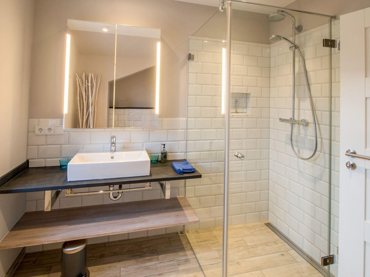 Zwei moderne, großzügige Duschbäder mit WC gehören ebenso zum Komfort wie der gemeinschaftliche Saunabereich im Erdgeschoss.