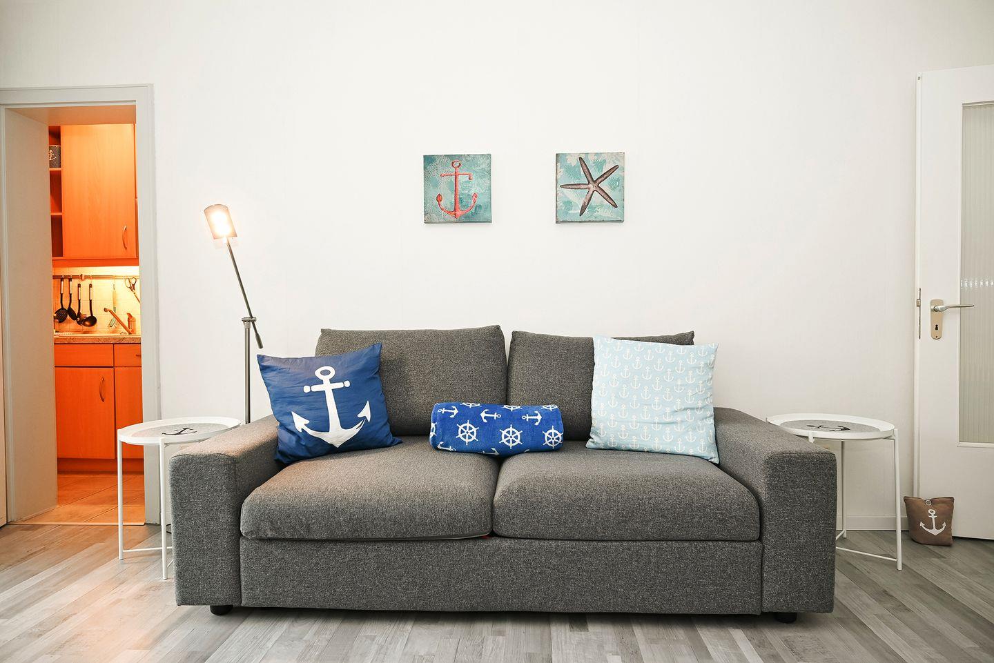 Die modern und stilvoll eingerichtete 2-Raum-Wohnung ist 52 Quadratmeter groß und bietet Platz für bis zu drei Küstenurlauber.