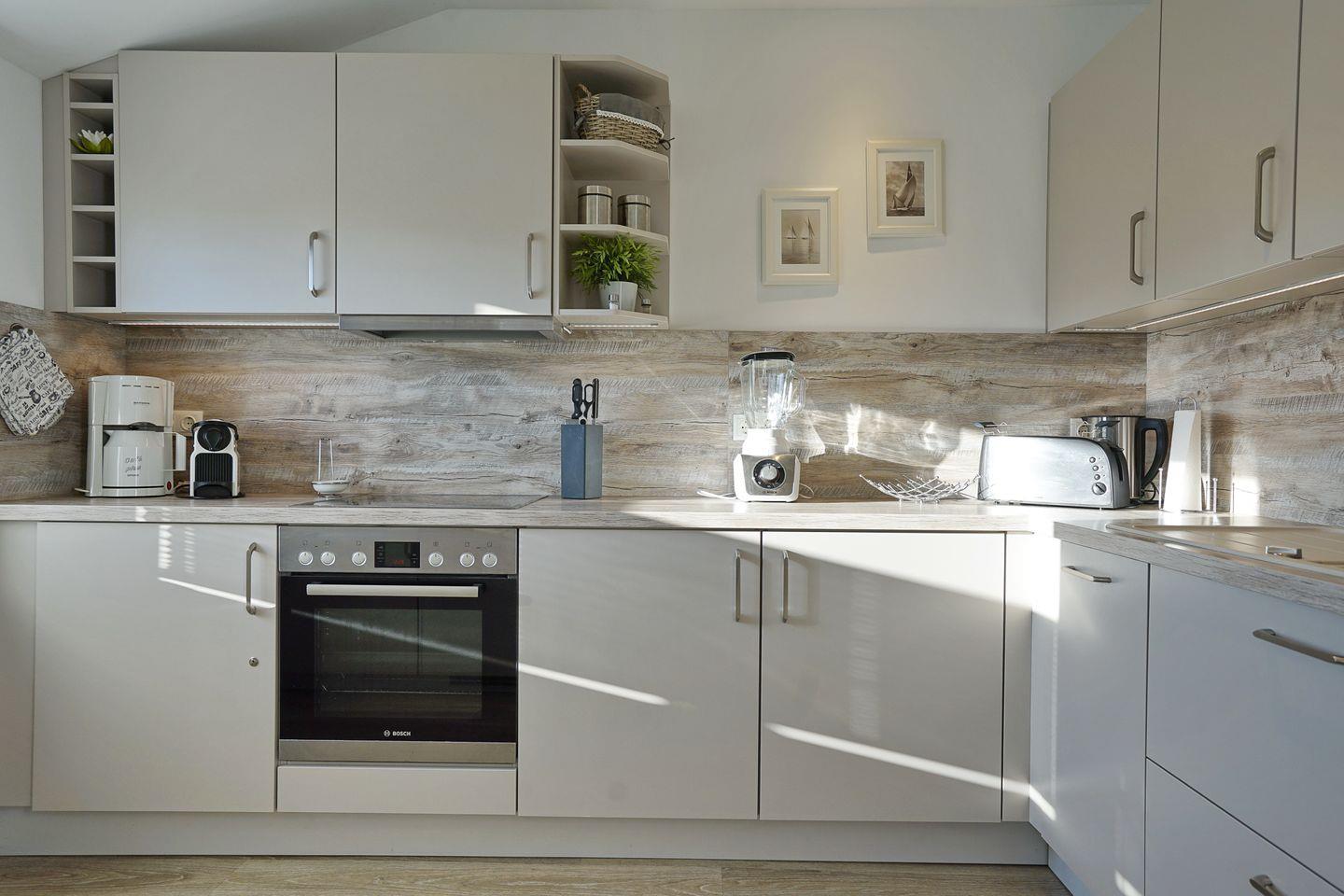 Auf insgesamt 115 Quadratmetern finden bis zu zehn Personen Platz. Die Wohnungen sind modern eingerichtet und bestechen mit ihrem hellen, nordischen Look.