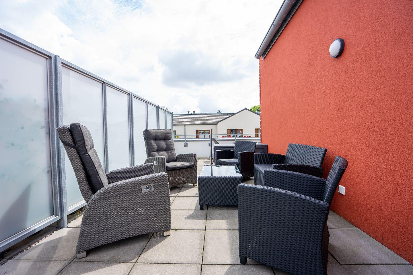 Bei dem Balkon handelt sich um eine große Dachterrasse, welche zum Verweilen einlädt.