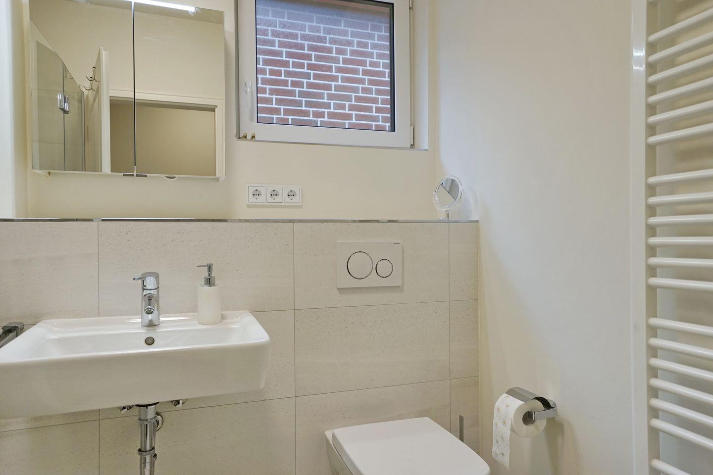 Das Badezimmer verfügt über eine ebenerdige Dusche. Zusätzlich gibt es noch ein Gäste-WC.