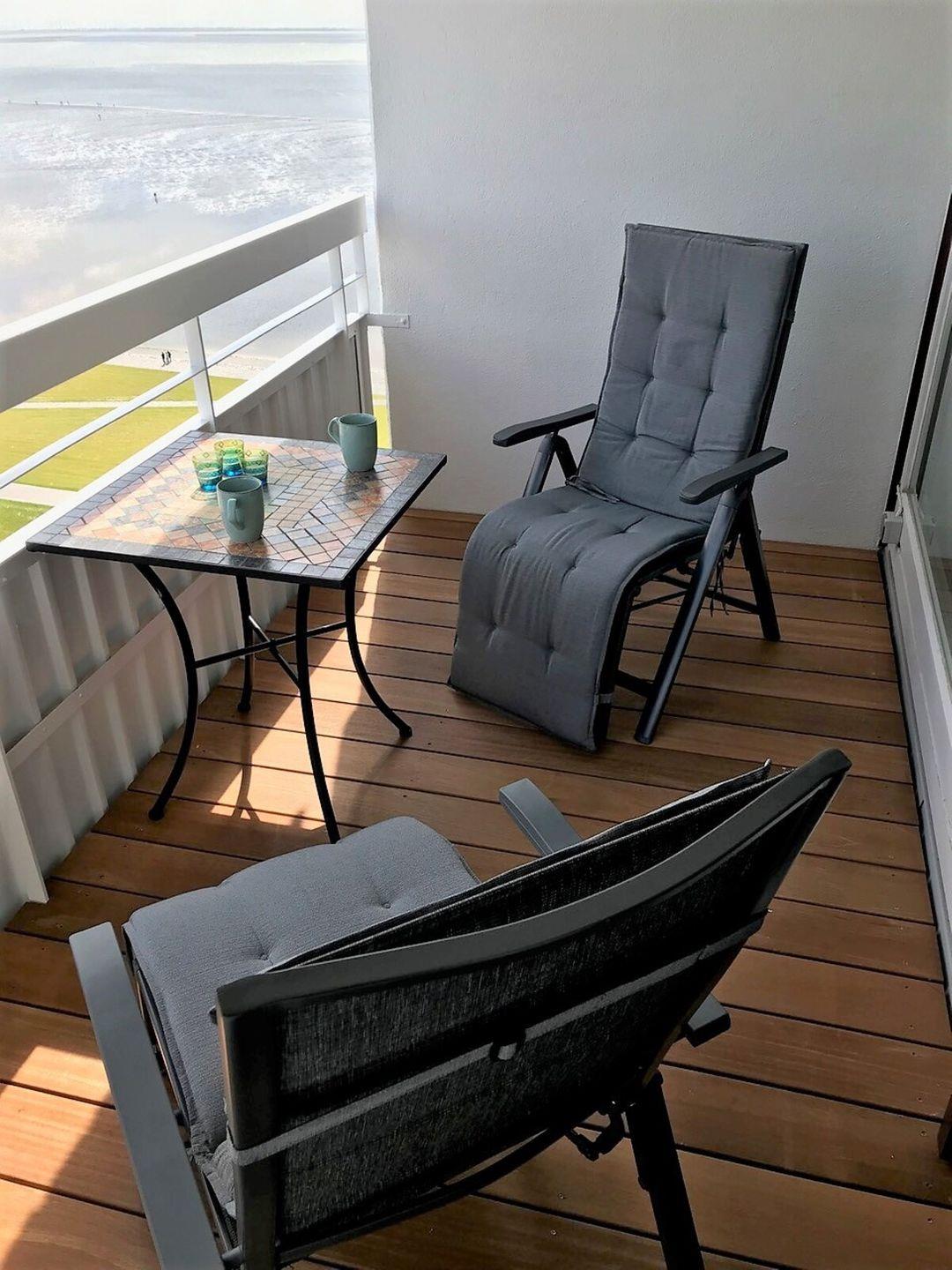 Tipp: Bereiten Sie sich ein schönes Frühstück zu und genießen Sie es auf dem Balkon – mit grandiosem Meerblick aus der 15. Etage! Nach dem Frühstück können Sie alle Punkte in Büsum schnell erreichen.