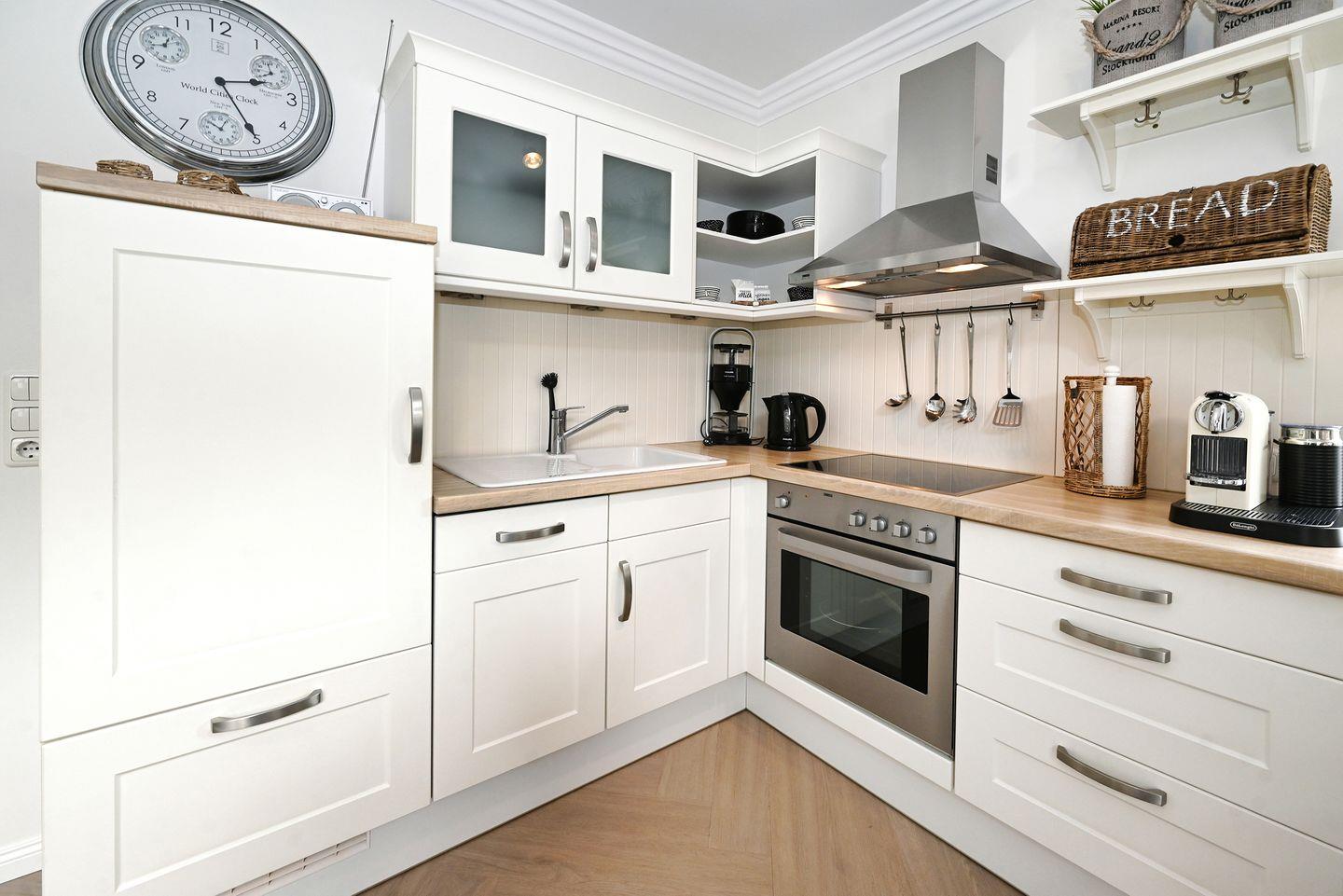 In der modernen Küche finden Sie alle wichtigen Kochutensilien. Eine komfortable Fußbodenheizung ist in allen Räumen vorhanden. Flatscreen-TVs im Wohn- und Schlafzimmer, eine Bluetooth-Musikanlage und ein Kaffeevollautomat machen das Angebot komplett.