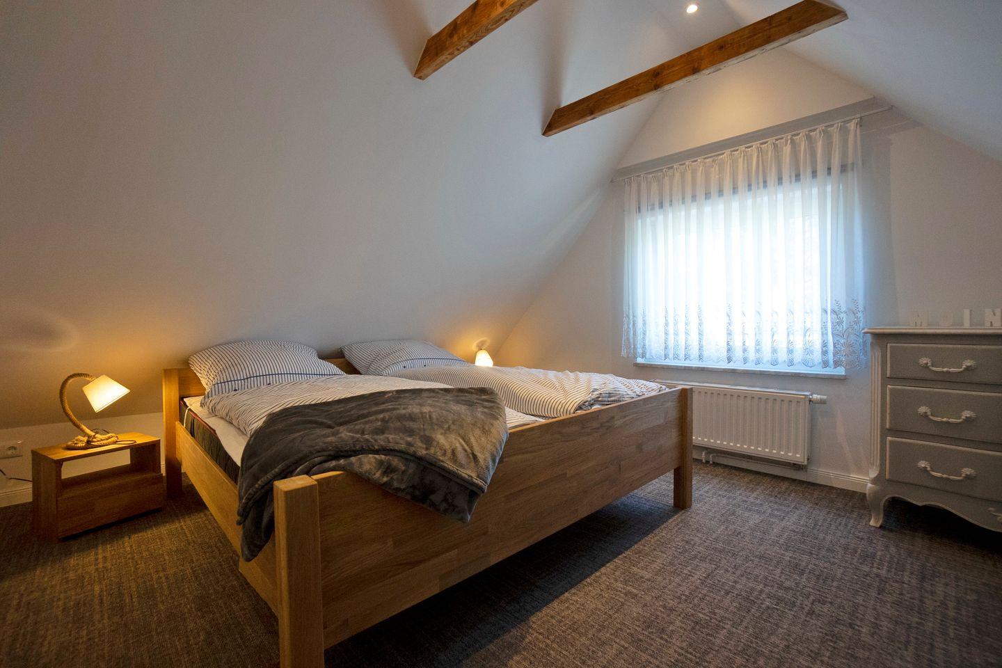 Obergeschoss, wo ein Schlafzimmer mit Doppelbett 1,80 x 2m, bestehend aus zwei Einzelmatratzen,