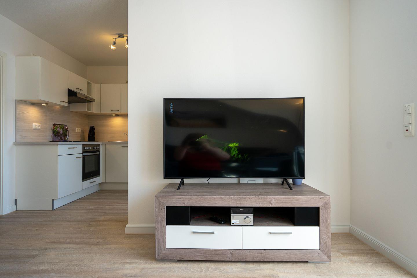 Die beiden Schlafzimmer verfügen über je ein Doppelbett. Eines der Schlafzimmer ist mit einem Fernseher ausgestattet.