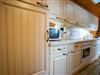 Die Einbauküche ist ausgestattet mit Ceran-Kochfeld, Backofen, Geschirrspüler, Kühl-Gefrierkombination, Mikrowelle, Kaffeemaschine und Wasserkocher.