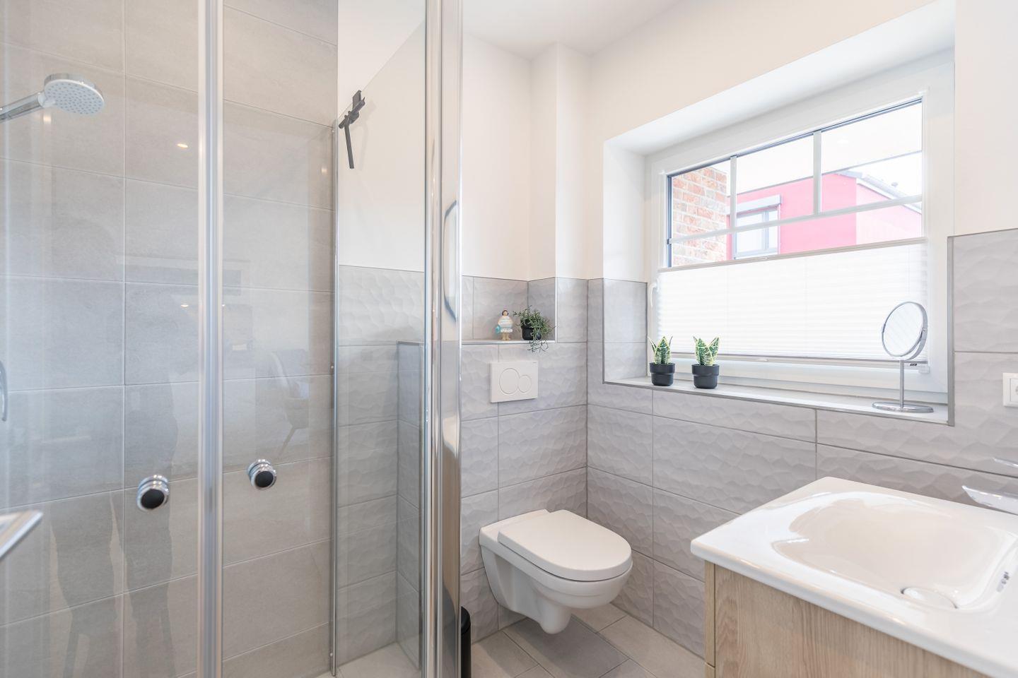 Dusche, WC Spiegel, Waschbecken mit Unterschrank, Haartrockner, Fenster mit Plissee, Fliegengitter