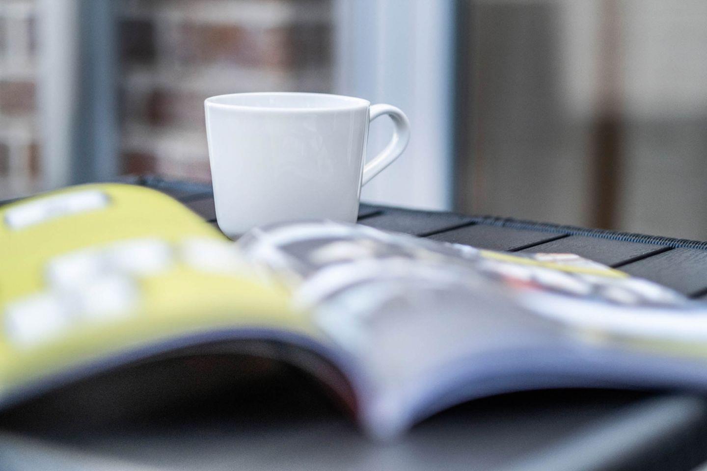 Balkon: Westliche-Lage mit hochwertigen Balkonmöbeln und Sonnenschirm