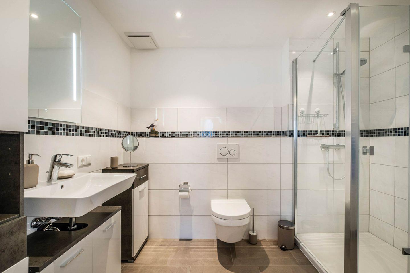 Sanitär: Duschbad, Handtuchheizung, Haar-Föhn, Kosmetikspiegel