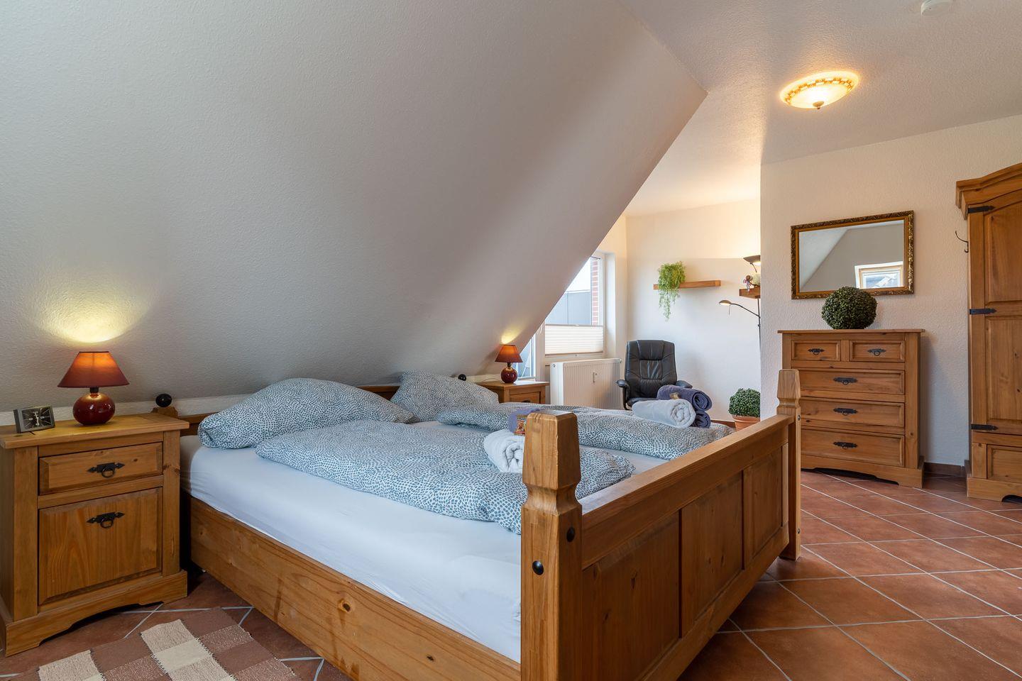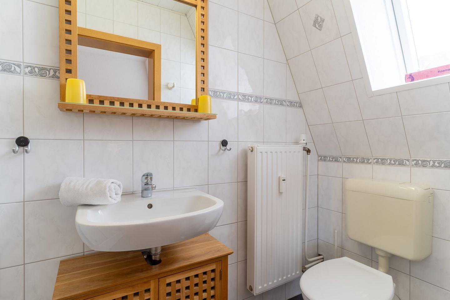 Das Haus befindet sich am alten Büsumer Deich. Über eine Treppe die wenige Meter weiter auf und über den Deich führt gelangt man auf die große Rasenfläche die sich vor dem Deich befindet, oder man spaziert auf der Deichkrone Richtung Hafen, bzw. Ortskern. Ein öffentlicher Spielplatz ist direkt auf der gegenüberliegenden Strassenseite zu finden.Die ca. 55qm große 2 Zimmer Wohnung befindet sich im 1. Obergeschoß und bietet ausreichend Platz für 3 Personen und ein Hund ist auch herzlich willkommen.Von der Wohnungstür aus gelangen Sie in die großzügige Wohnküche mit Schlafsofa mit Zugang zum Balkon.Im Schlafzimmer befindet sich ein Doppelbett und der Zugang zum Duschbad und zum Balkon.