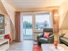Ledersofa, 2 Ledersessel, Fußhocker, Couchtisch, Flachbild-TV, Schrank, Radio, CD-Player, Esstisch mit 4 Stühlen, Fliegengitter an der Terrassentür, Zugang zum Balkon mit Südlage