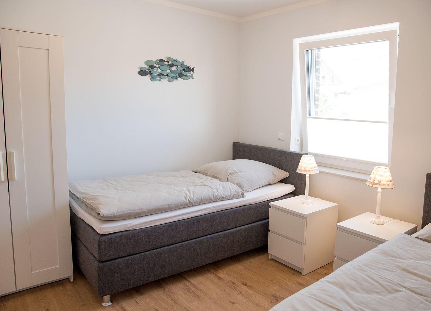 Von einem der Schlafzimmer ist ein weiterer Balkon (Norden) zu erreichen, es ist mit einem Boxspring- Doppelbett ausgestattet, das zweite Schlafzimmer ist mit 2 Boxspring- Einzelbetten eingerichtet.