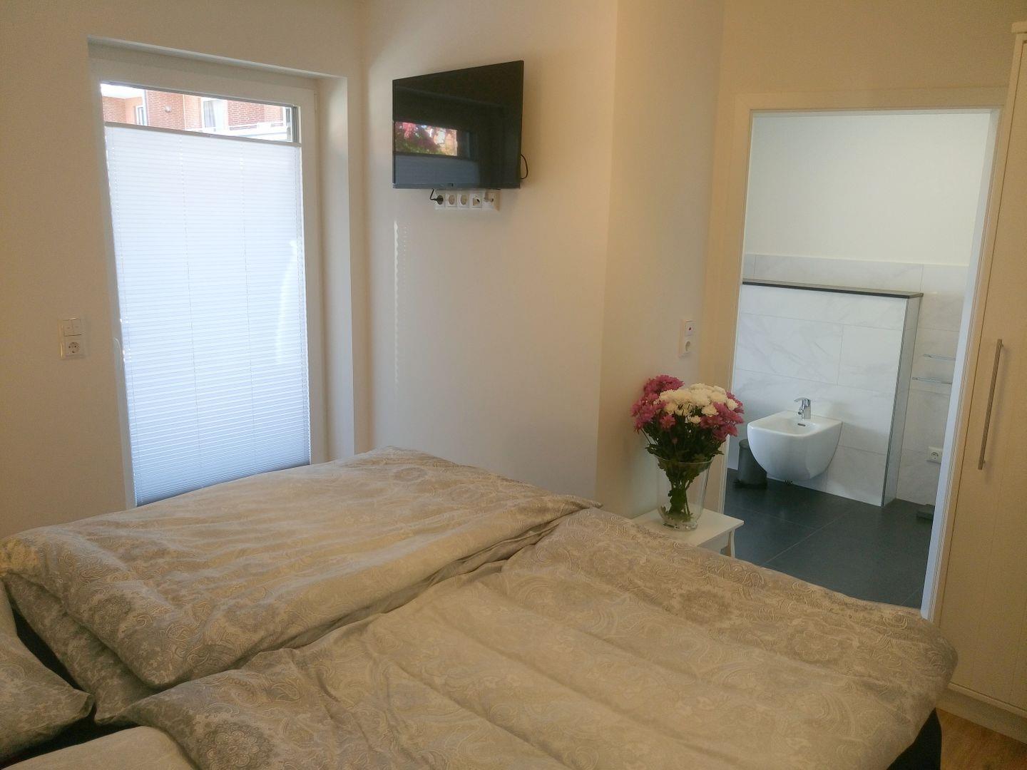 In den beiden Schlafzimmern gibt es Boxspring- Doppelbetten(1,80x 2m, mit durchgehendem Topper) und TV- Geräte, an das eine Schlafzimmer grenzt ein Tageslicht- Bad und ein begehbarer Kleiderschrank bietet genügend Platz für Ihre Garderobe.