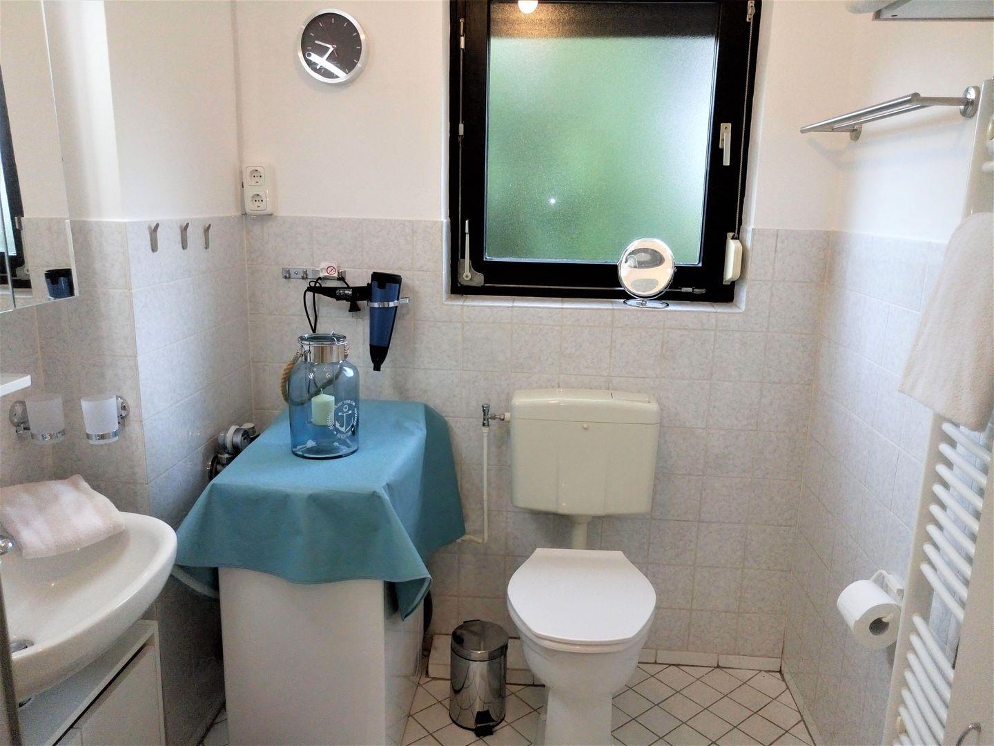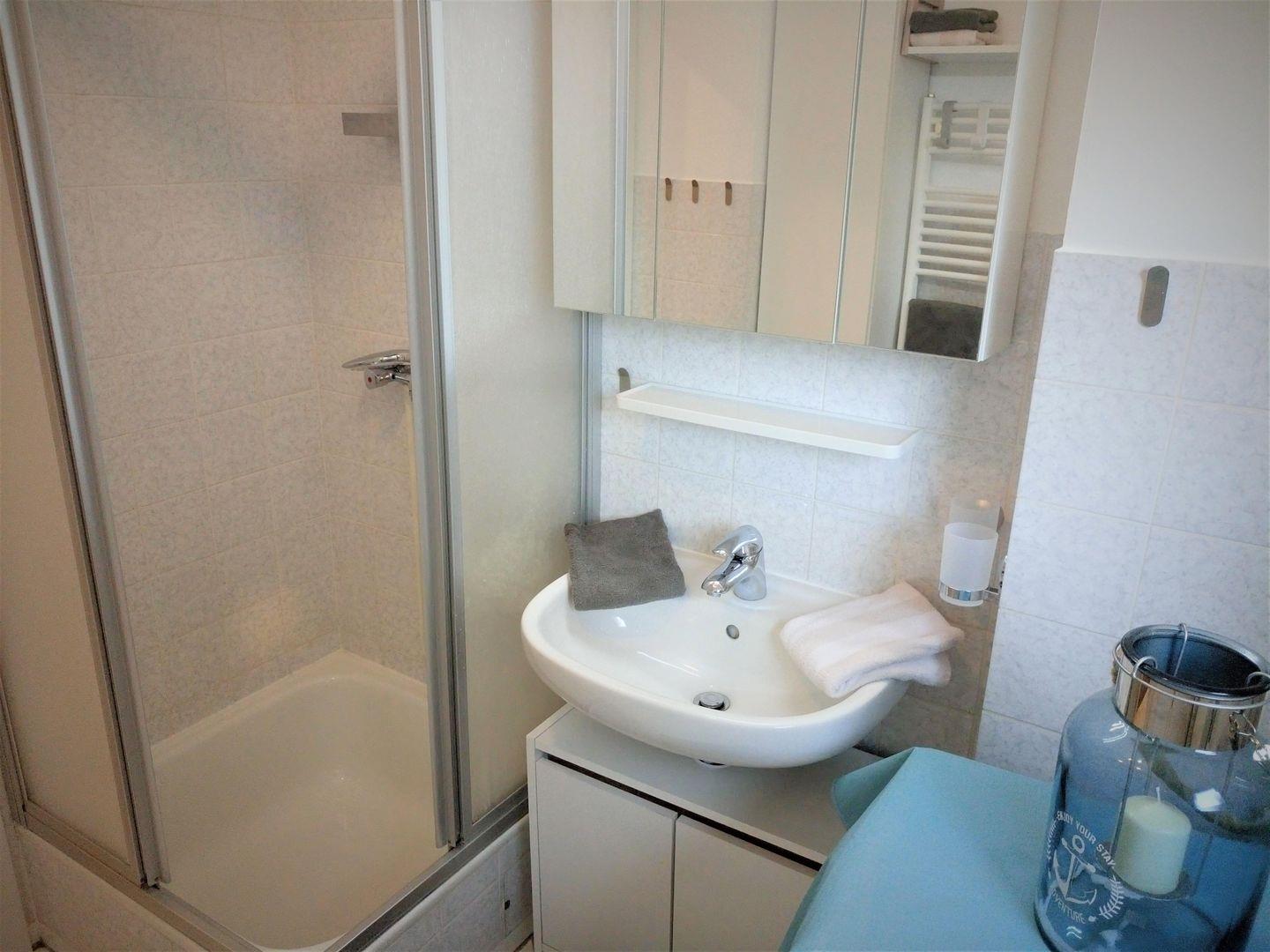 Das Tageslicht- Bad verfügt über eine Dusche und einen Handtuchwärmer und rundet diese Wohnung ab.