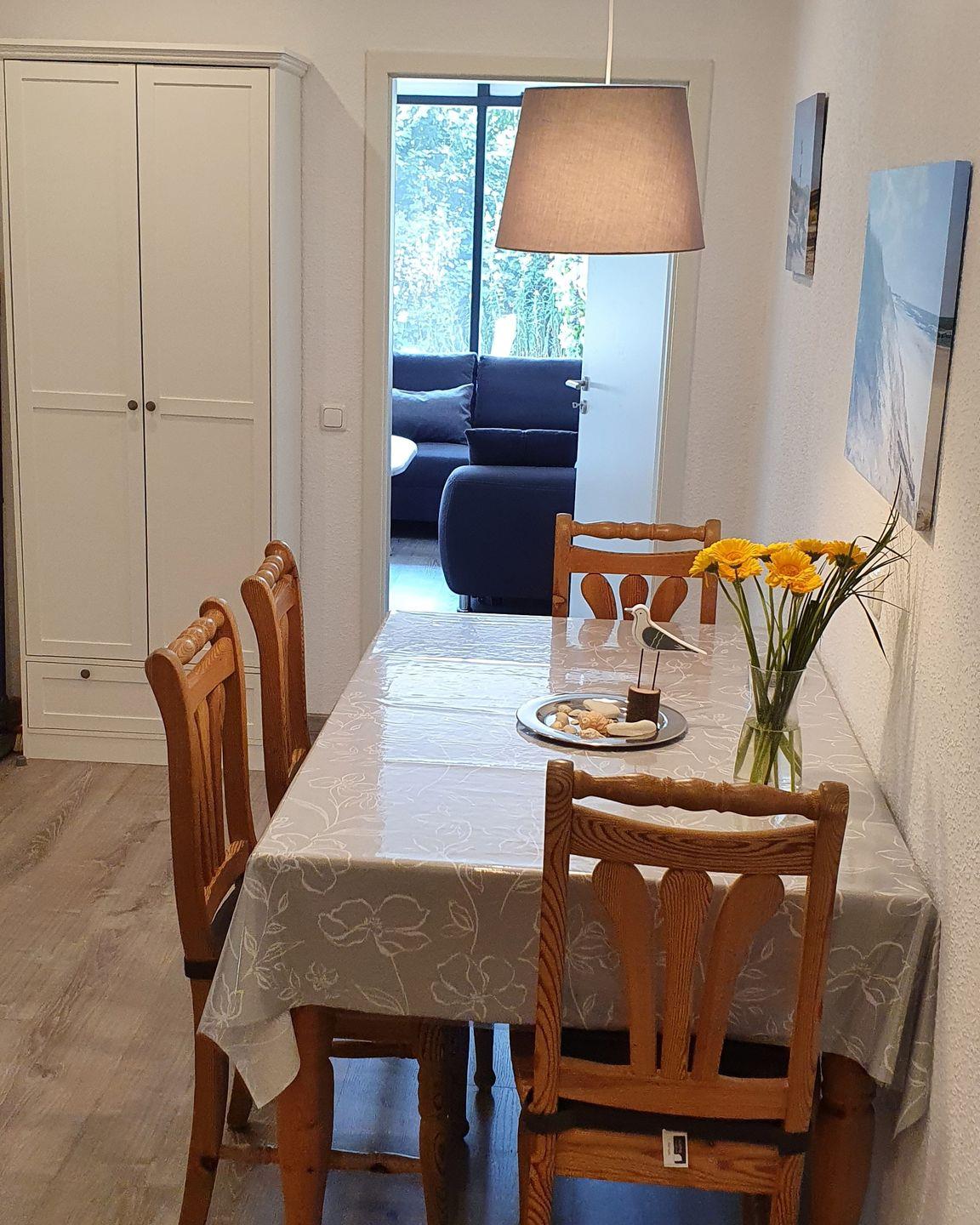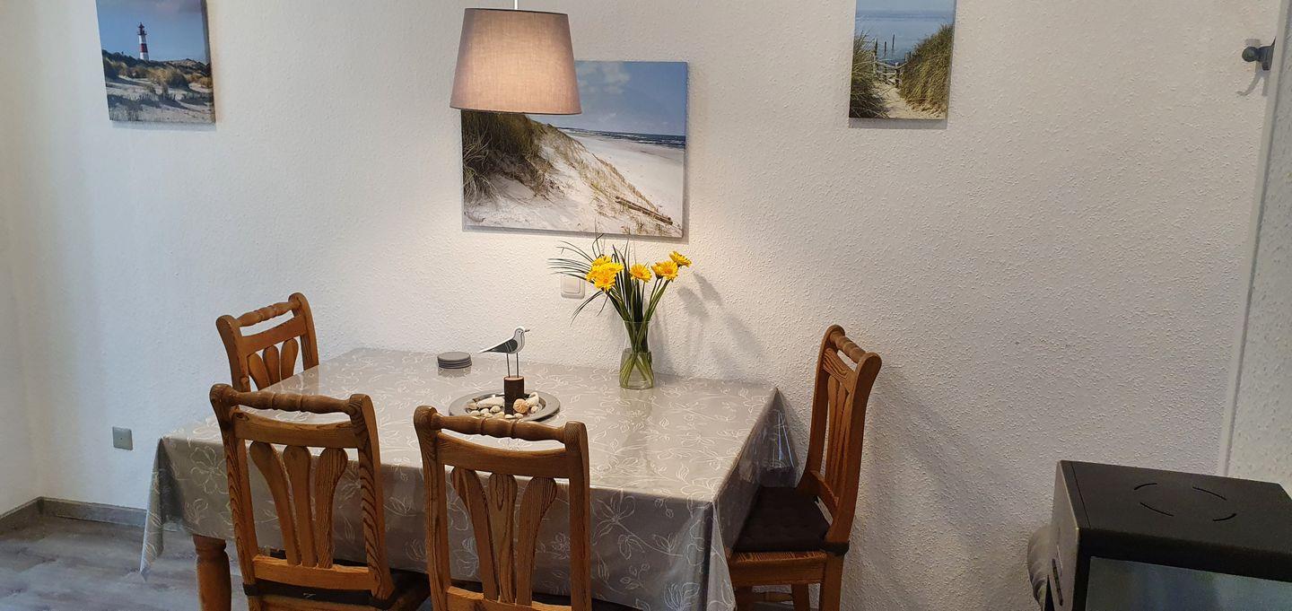 In der Küche finden Sie alles vor, was Sie benötigen um sich selber mit den nordischen Köstlichkeiten zu verpflegen. Ein Esstisch mit genügend Platz steht angrenzend zur Küche bereit.
