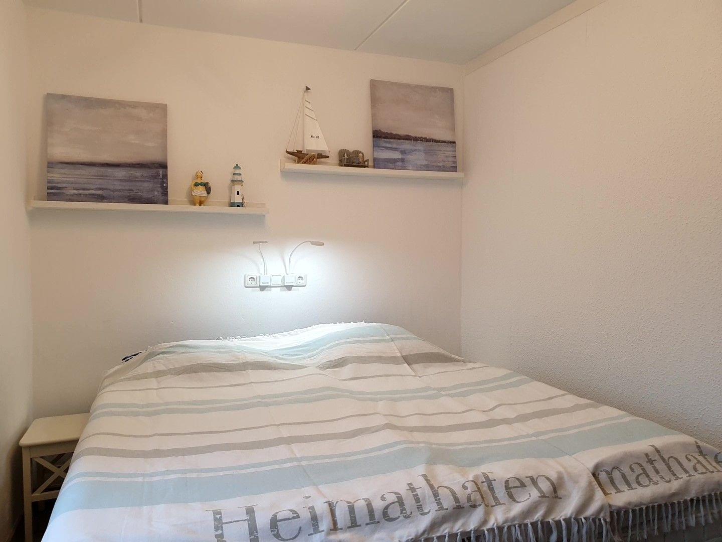 Ansonsten bietet Ihnen das Schlafzimmer mit den beiden Einzel- Boxspringbetten, die als Doppelbett verbunden sind und eine Außenjalousie den Raum für einen erholsamen Schlaf.