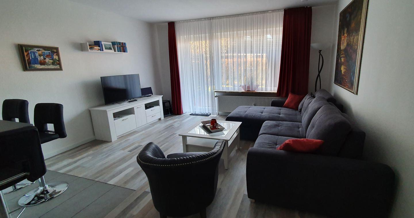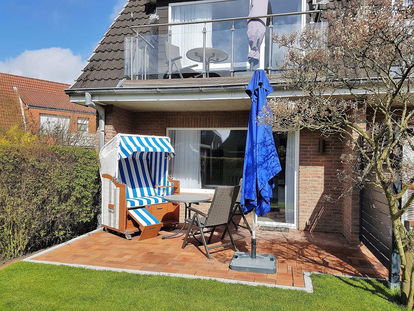 Die Wohnung befindet sich im Erdgeschoss einer kleinen Wohnanlage und verfügt über eine Sonnenterrasse in Südlage, die mit Terrassenmöbeln und einem Strandkorb den perfekten Platz bietet um die frische Nordseeluft zu atmen.