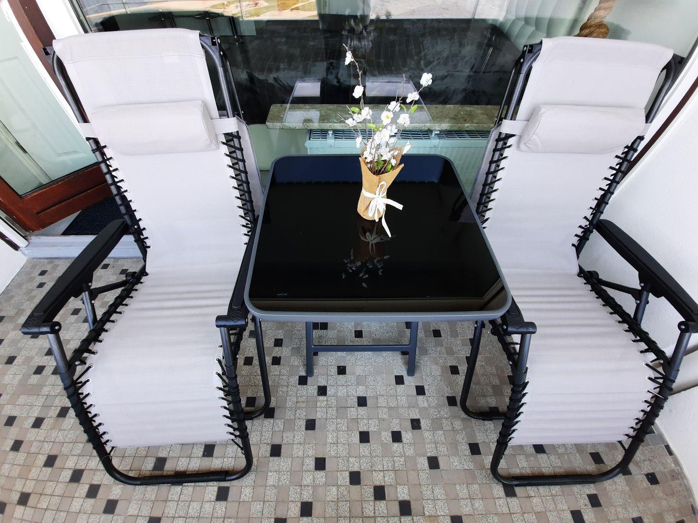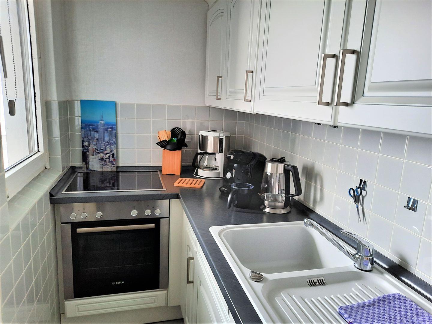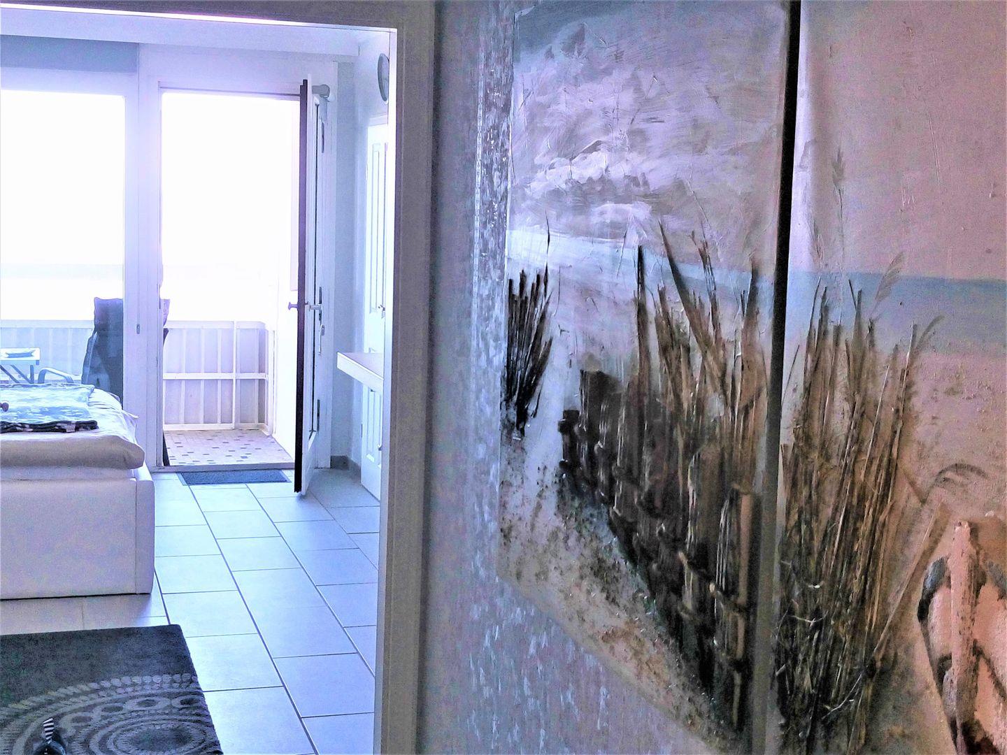 Durch das große Panoramafenster steht ein heller, freundlicher Wohn- Schlafraumraum zur Verfügung. Ein bequemes Doppelbett (1,80x 2m, durchgehende Matratze) und ein 2- Sitzer- Sofa laden dazu ein es sich gemütlich zu machen. Für Ihre Urlaubsgarderobe steht ein ausreichend großer Kleiderschrank bereit. Mit Leckereien aus der Region kann man sich an dem Hochtisch mit Sitzbank und Stühlen selbst ein bisschen verwöhnen. Die Wohnung hat eine separate, gut ausgestattete Küche, die sich bestens eignet um sich selber zu verpflegen. Ein Abstellraum zum Unterbringen von Koffern, etc. ist vorhanden. Ein Badezimmer mit Funktionsdusche rundet diese Wohnung ab.