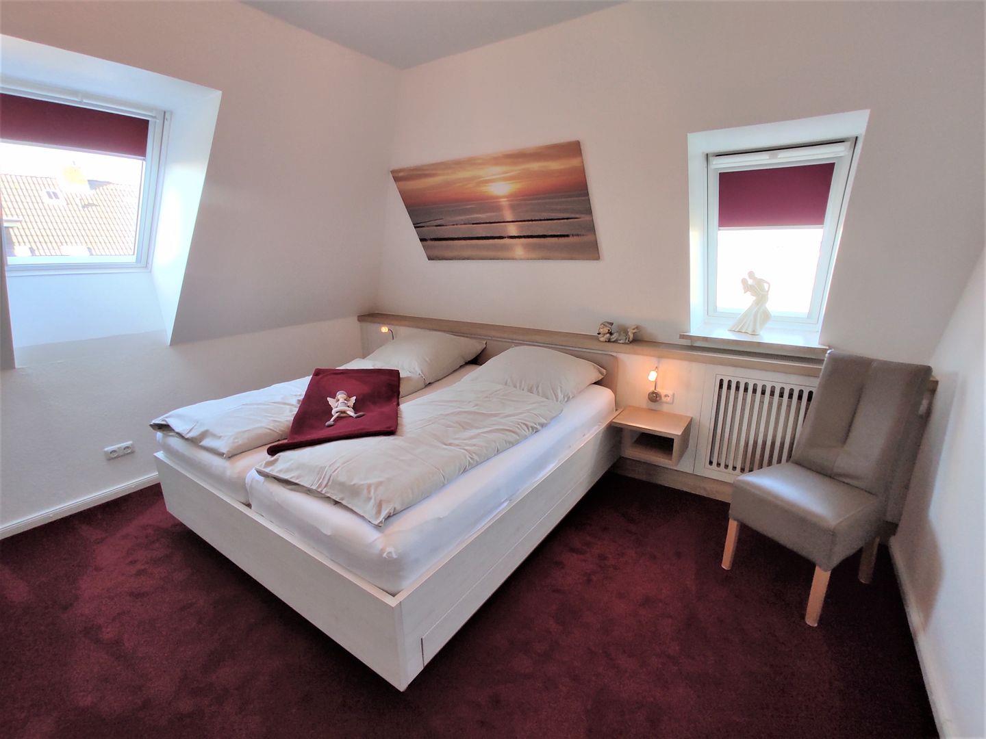 Das geräumige Schlafzimmer ist mit einem hochwertigen Doppelbett