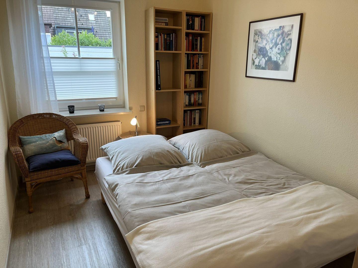 Ein Schlafzimmer mit Doppelbett (2 Einzelmatratzen) und einem großen Kleiderschrank, und ein Gästezimmer mit einer Schlafcouch bietet erholsame Nachtstunden für eine 3.Person.