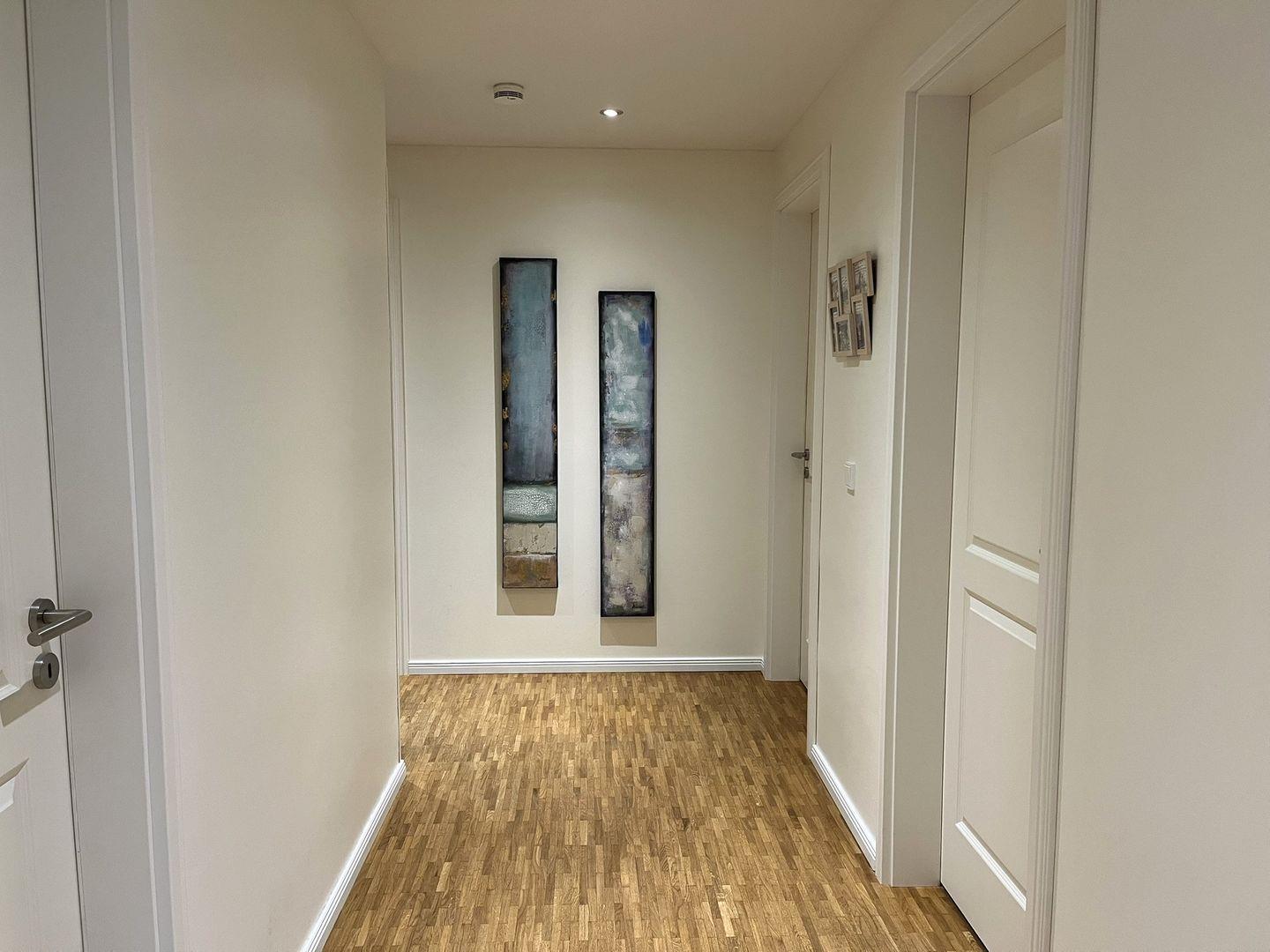 Das elegante Badezimmer mit Handtuchwärmer und bodengleicher Dusche macht diese Ferienwohnung perfekt.