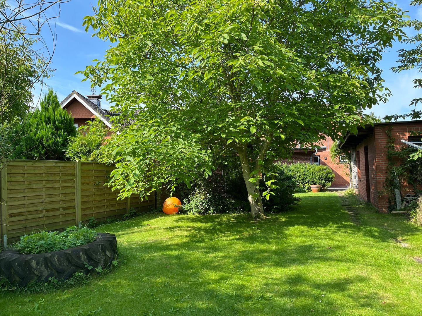 Auf der Terrasse, mit Blick in den großen Garten, lässt es sich herrlich entspannen.