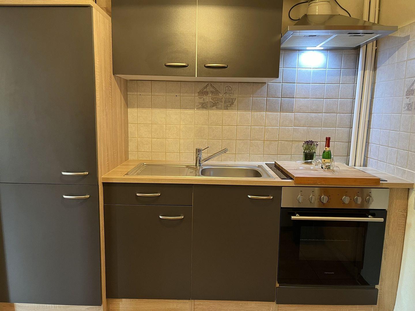 Die Küche ist mit allem ausgestattet, um sich kulinarisch zu verwöhnen, ob mit einem Kaffee oder einer der norddeutschen Spezialitäten. Der Esstisch im Wohnzimmer bietet den nötigen Platz dafür.