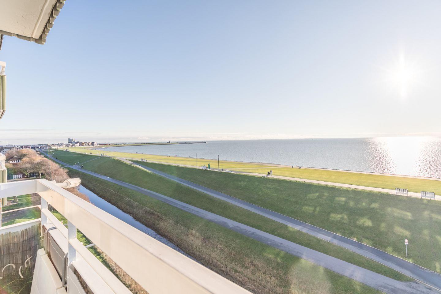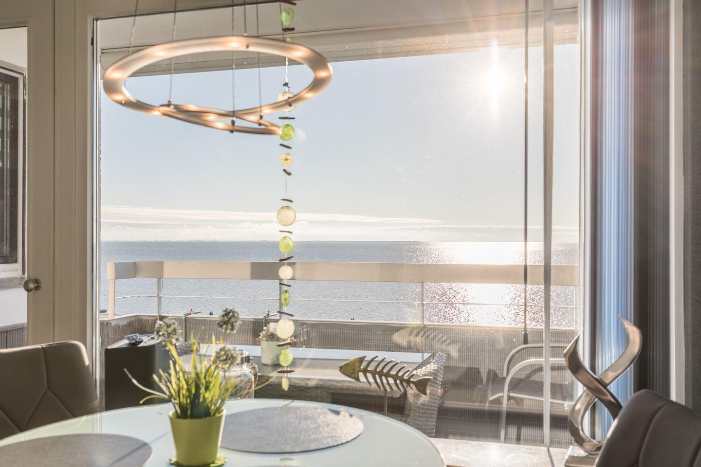 Genießen Sie den Meerblick vom Balkon in der 5ten Etage auf das Weltkulturerbe Nordsee-Wattenmeer. Die Ferienwohnung liegt direkt am Strand und bietet mit einer außergewöhnlich modernen Ausstattung und einem extravaganten Stil jeglichen Komfort. Erleben Sie stimmungsvolle Sonnenuntergänge sowie den weiten Blick über das Meer.