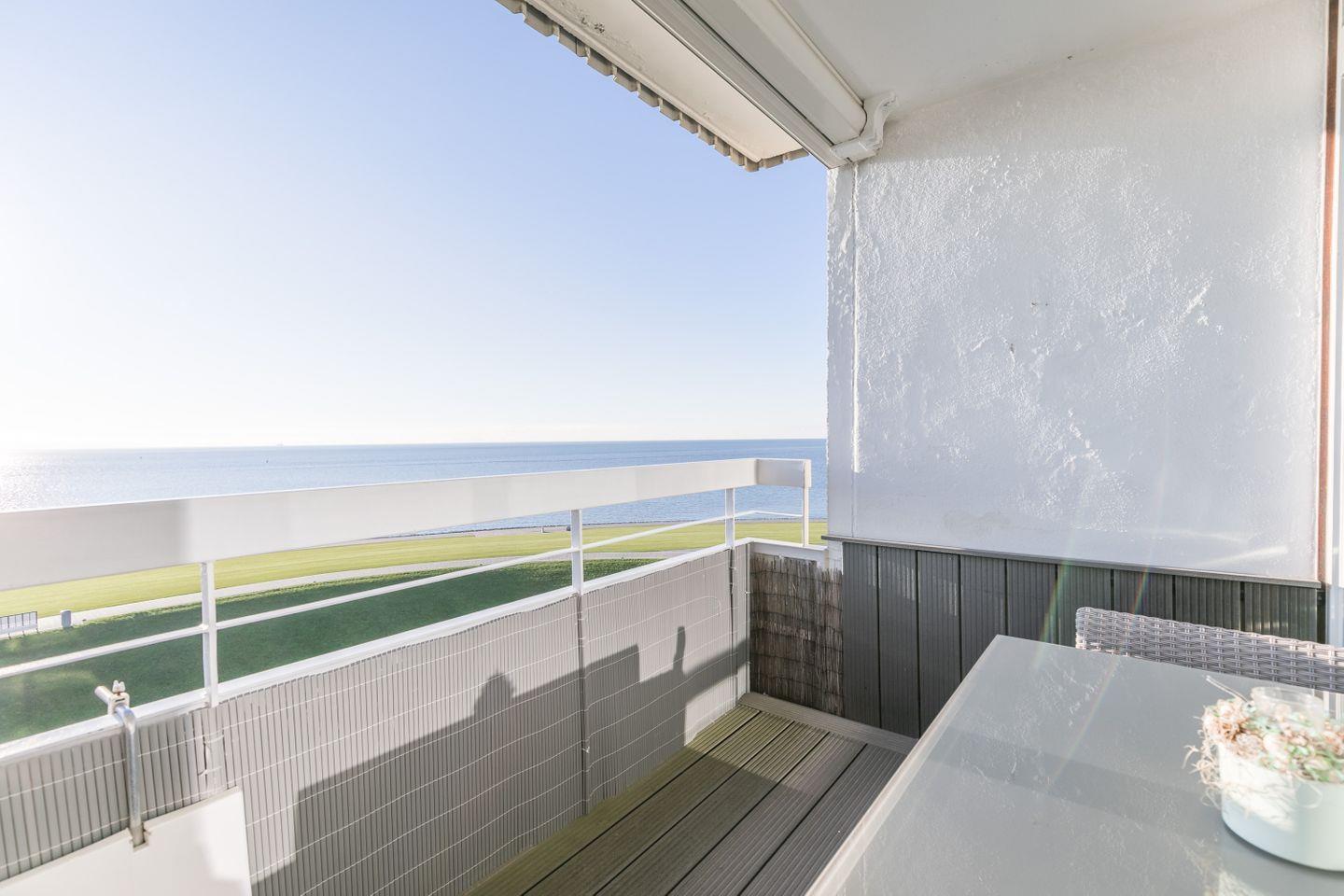 Flur mit geräumiger Abstellkammer, Garderobe, Ganzkörperspiegel, Balkon mit Meerblick & Balkonmöbel, Markise, WLAN (Glasfaser), 1 kostenfreier Parkplatz, Fahrradabstellraum im Keller, gemeinsame Waschmaschine und Trockner im Haus, Meerblick, Wäsche optional dazu buchbar, zusätzlicher barrierearmer, stufenloser Seiteneingang