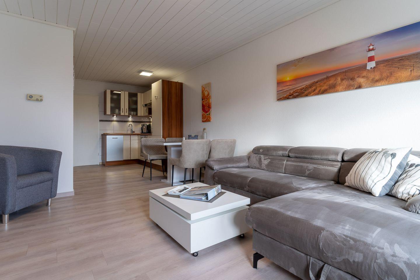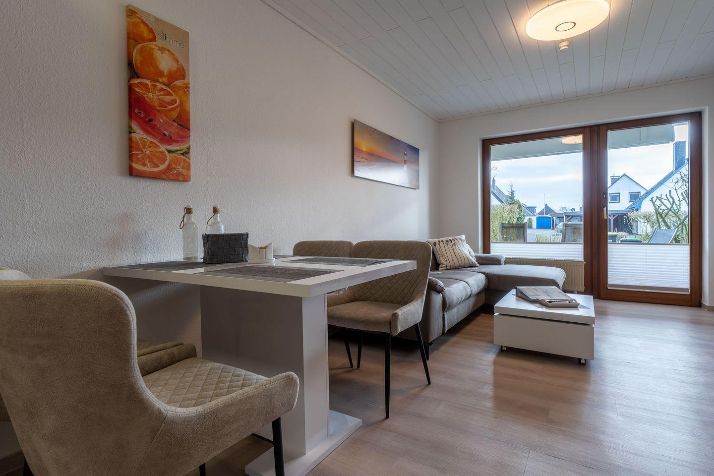 Herzlich willkommen in unserem gemütlichen Ferienhaus! Auf 2 Etagen und 63 qm finden Sie alles für einen erholsamen Urlaub. Die moderne Wohnküche und die Süd-Terrasse, mit Überdachung laden zum Verweilen ein. Zwei Schlafzimmer, 1 Badezimmer, 1 Gäste-WC, und Fahrräder für die Erkundung der Umgebung stehen bereit. Nur 150m entfernt: ein großer Kinderspielplatz. Erleben Sie unvergessliche Momente in dieser idyllischen Umgebung!