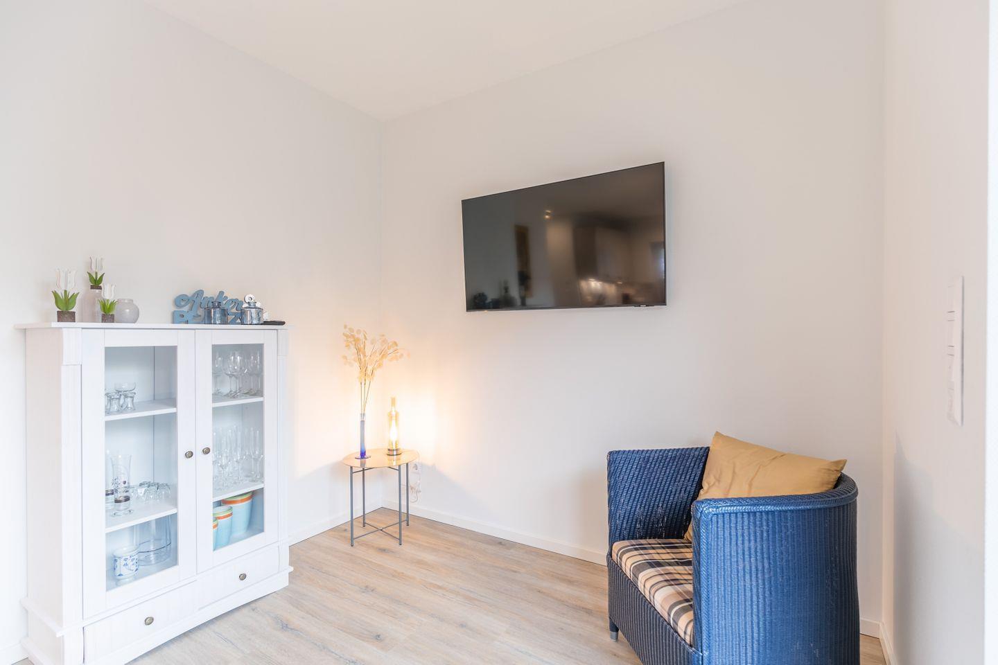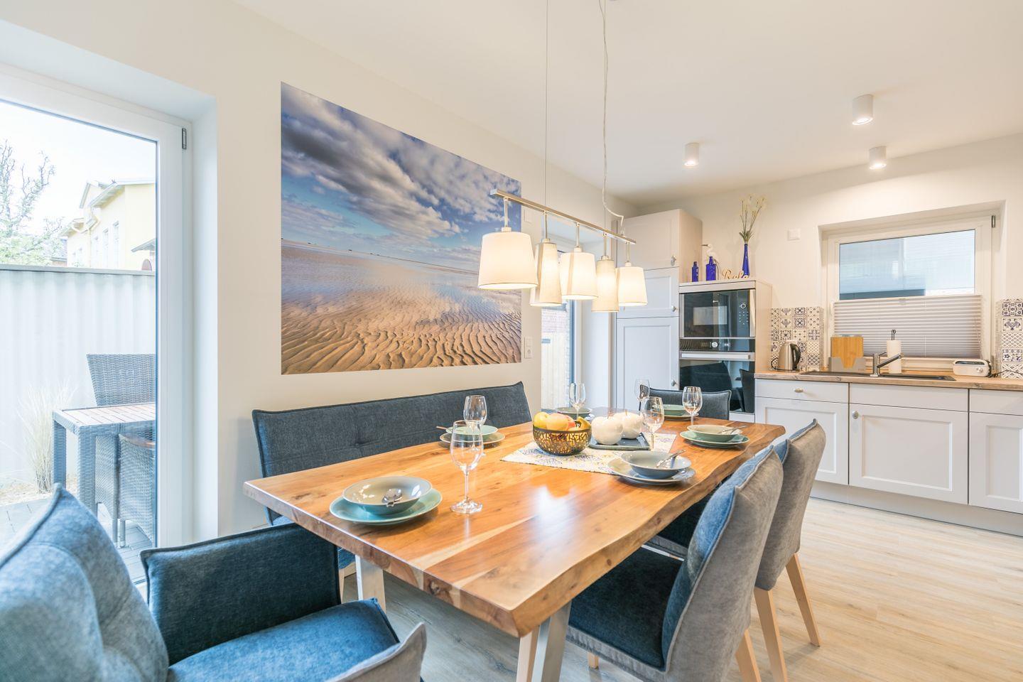 Im Erdgeschoss befindet sich neben einem Gäste-WC und dem HWR die großzügige Wohnküche mit gemütlicher Sitzecke inkl. wandhängendem Flachbild-Smart-TV. Die voll ausgestattete Küche bietet alle wichtigen Utensilien, um ein perfektes Abendessen zu zaubern.