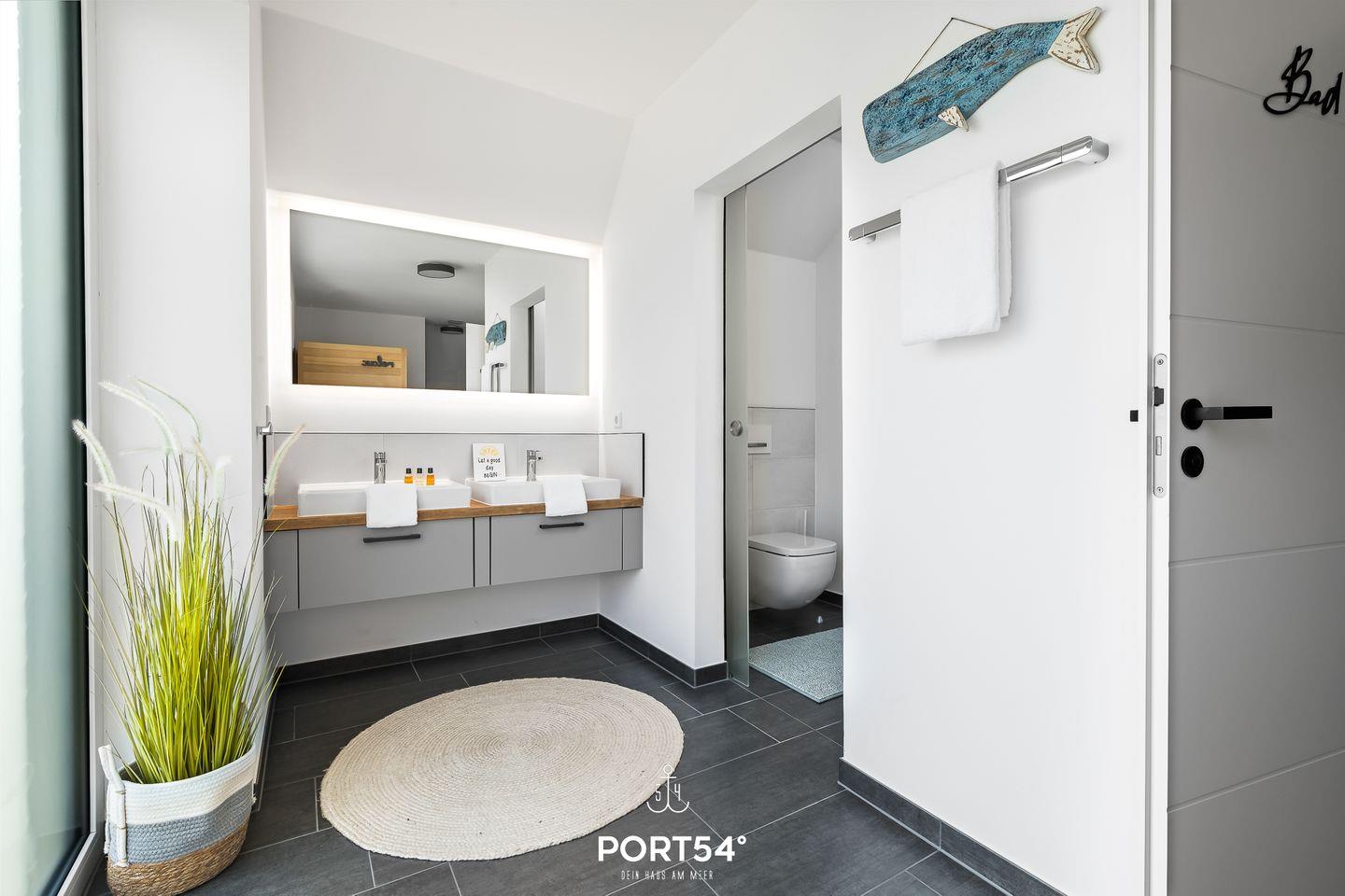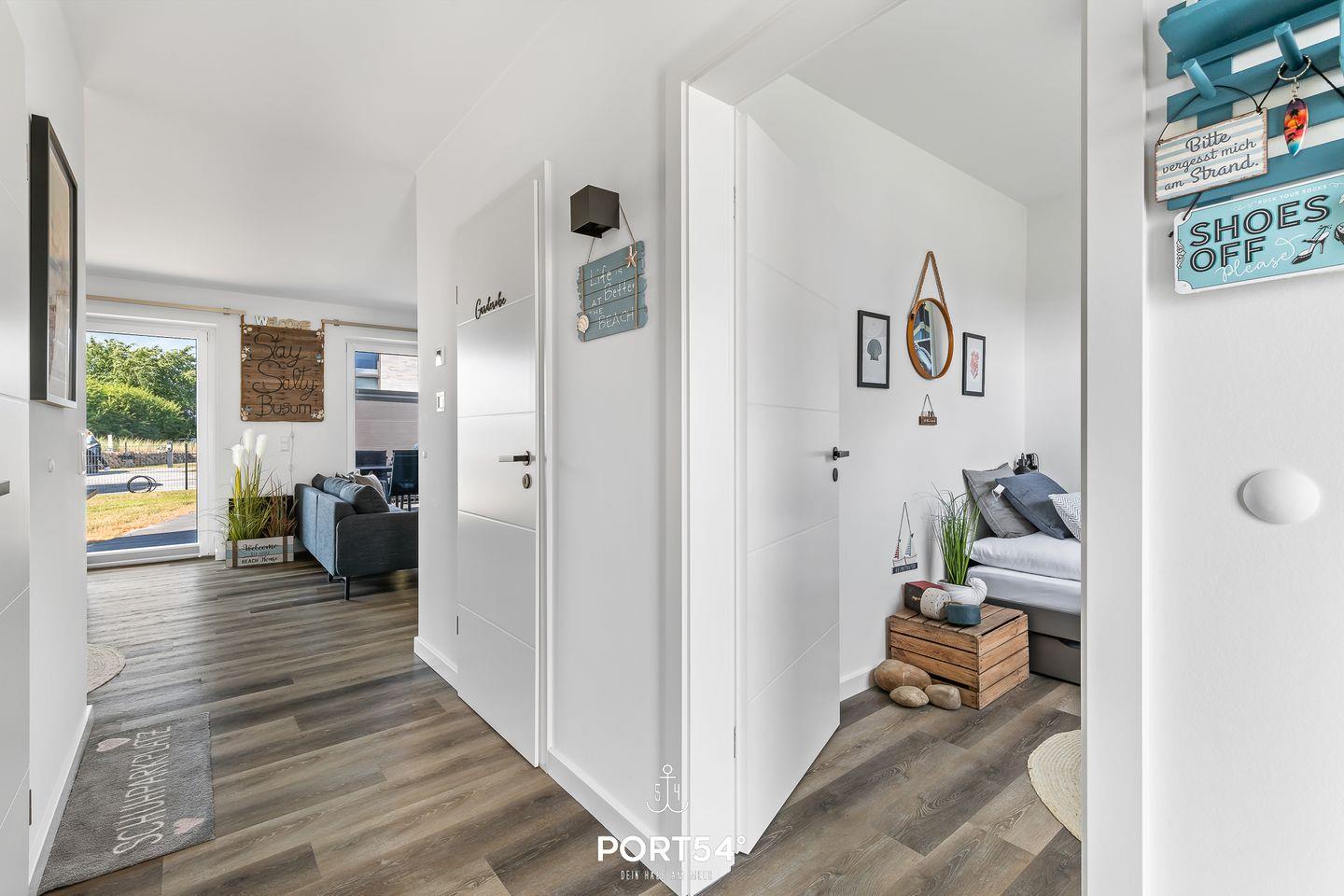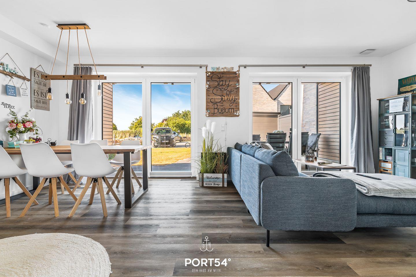 Auf 2 Etagen bietet das Ferienhaus "Stay Salty" auf ca. 106m² Platz für bis zu 6 Personen. Im Erdgeschoss bietet das moderne und stilvoll eingerichtete Ferienhaus einen offenen Wohn- und Essbereich mit angrenzender Küche, sowie ein Gäste-WC. An kälteren Tagen können Sie es sich vor dem Kaminofen gemütlich machen. Auf der möblierten Terrasse können Sie hervorragend am Grill den Tag ausklingen lassen, es stehen ein Kohle- und ein kleiner Elektrogrill für Sie bereit. Das kleinere Schlafzimmer im Erdgeschoß ist mit einem vollwertigem Bett ausgestattet. Das Obergeschoss teilt sich auf in zwei Schlafzimmer mit eigenem Zugang zum Balkon und je einem Doppeltbett von 160 x 200cm, durchgehende Matratze. Ein Badezimmer mit ebenerdiger Dusche und Infrarot-Wärmekabine, sowie separatem WC, Doppelwaschtisch und Waschmaschine vervollständigen das Obergeschoß. Nach langen Strandspaziergängen bietet die Infrarotkabine den perfekten Rückzugsort für entspannte Stunden. Alle Schlafzimmer verfügen über einen Flachbild-TV und sind mit Verdunkelungsmöglichkeiten ausgestattet. Vor dem Haus steht Ihnen ein kostenfreier Parkplatz zur Verfügung. Ihre eigenen Fahrräder oder die zum Haus gehörigen Fahrräder können Sie im abschließbaren Schuppen unterstellen. Der Schuppen im Garten ist mit einer Steckdose versehen, hier können E-Bikes geladen und untergestellt werden.