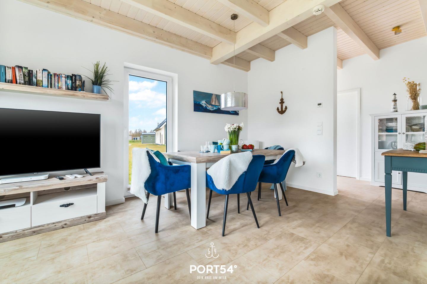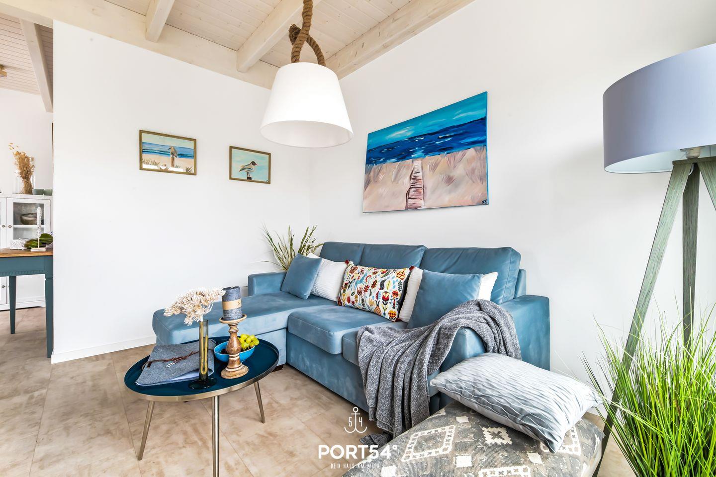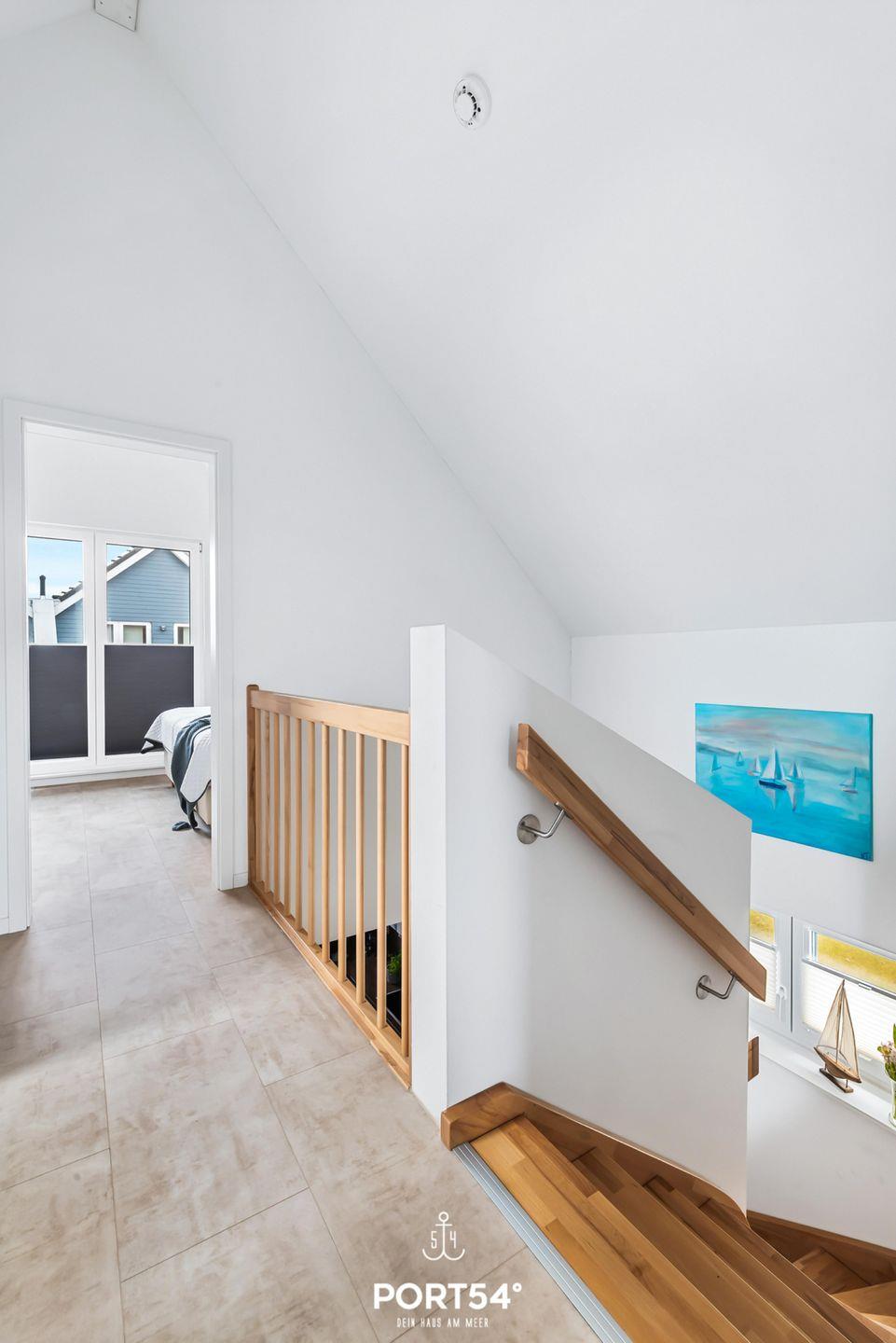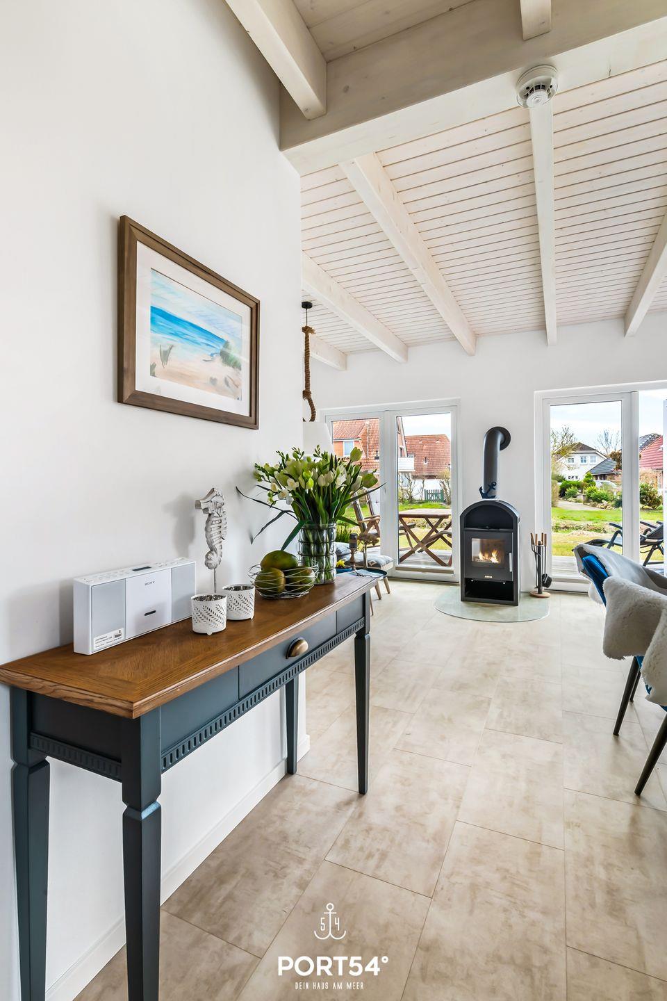 Der offene Wohn- und Essbereich mit Zugang zur Terrasse bietet einen Kaminofen. Die separate Küche ist voll ausgestattet. In den 2 Schlafzimmern im OG sind ein Doppelbett und 2 Einzelbetten vorhanden. Das Duschbad im EG bietet eine Infrarot-Sauna. Im OG befindet sich ein Vollbad. Die Terrasse lädt zum Verweilen und Grillen ein. Ein abschließbarer Fahrradschuppen und ein PKW-Stellplatz sind vorhanden.