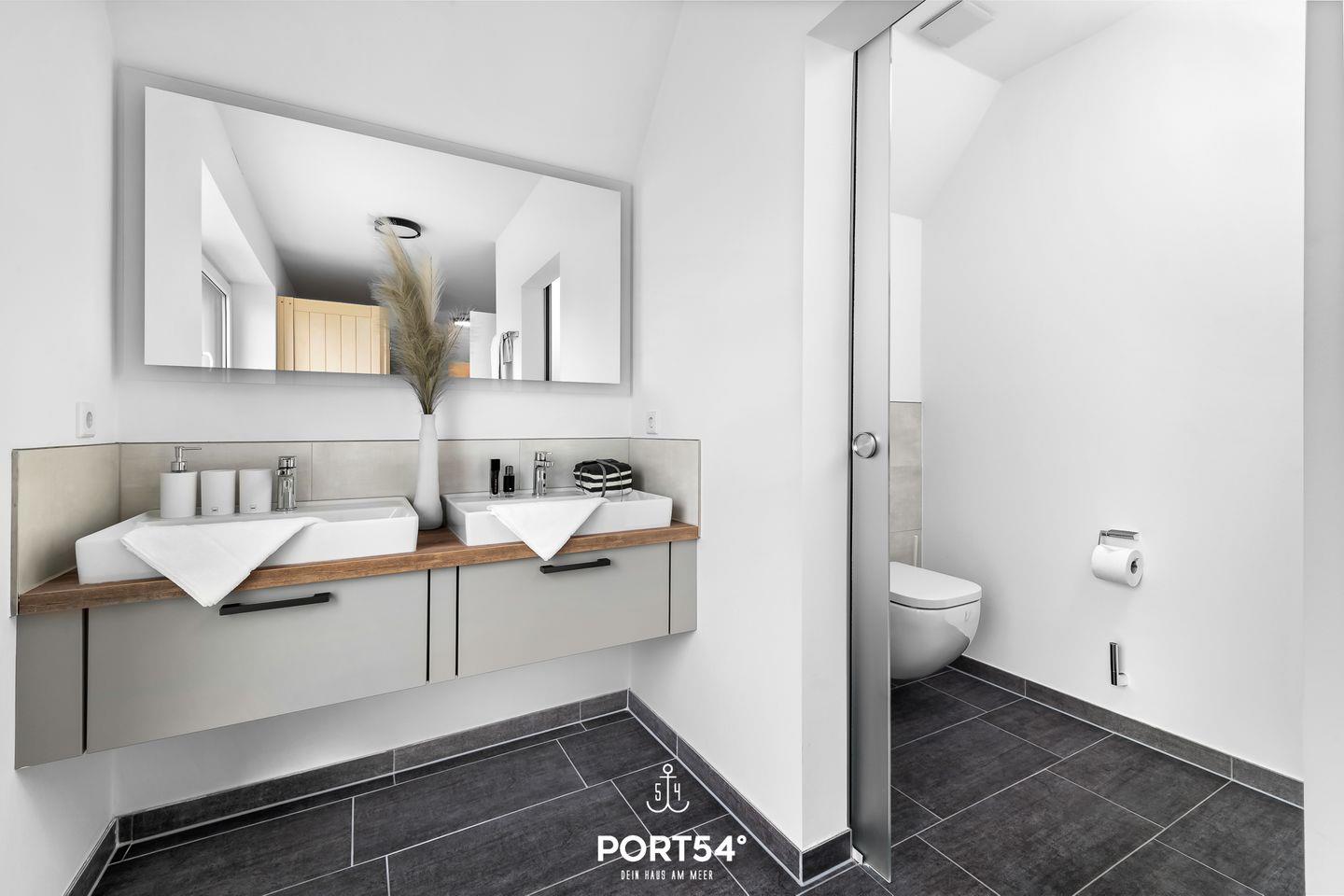Im Erdgeschoss bietet das moderne Ferienhaus "Waidla-Huus" einen offenen Wohn- und Essbereich mit angrenzender Küche, drei Schlafzimmer, sowie 1 Badezimmer und Gästebad. An Schmuddeltagen können Sie es sich vor dem Pellet-Kamin gemütlich machen. Das eine Schlafzimmer verfügt über ein Einzelbett (90x200cm), Verdunkelungsmöglichkeiten und Insektenschutzgitter. Das Obergeschoss teilt sich in zwei Schlafzimmer und ein Badezimmer mit ebenerdiger Dusche und Sauna, sowie separatem WC und Waschbecken auf. Nach langen Strandspaziergängen bietet die Finnische Sauna den perfekten Rückzugsort für entspannte Stunden. Beide Schlafzimmer im Obergeschoss sind mit Doppelbetten (180x200cm) eingerichtet. Auch hier sind die Fenster verdunkelbar. Alle Schlafzimmer verfügen über einen Flatscreen-TV. Ihr Vierbeiner soll natürlich nicht zu Hause bleiben, auf Anfrage und gegen Gebühr dürfen Sie Ihren Hund gerne mitnehmen. Laue Sommerabende verbringen Sie am besten auf der vollmöblierten Terrasse am Elektro-Grill, oder stürmische Nachmittage am Kamin - dieses Haus bietet für jeden den perfekten Ort für einen Nordseeurlaub der Extraklasse. Vor dem Haus steht Ihnen ein kostenfreier Privatparkplatz zur Verfügung.
