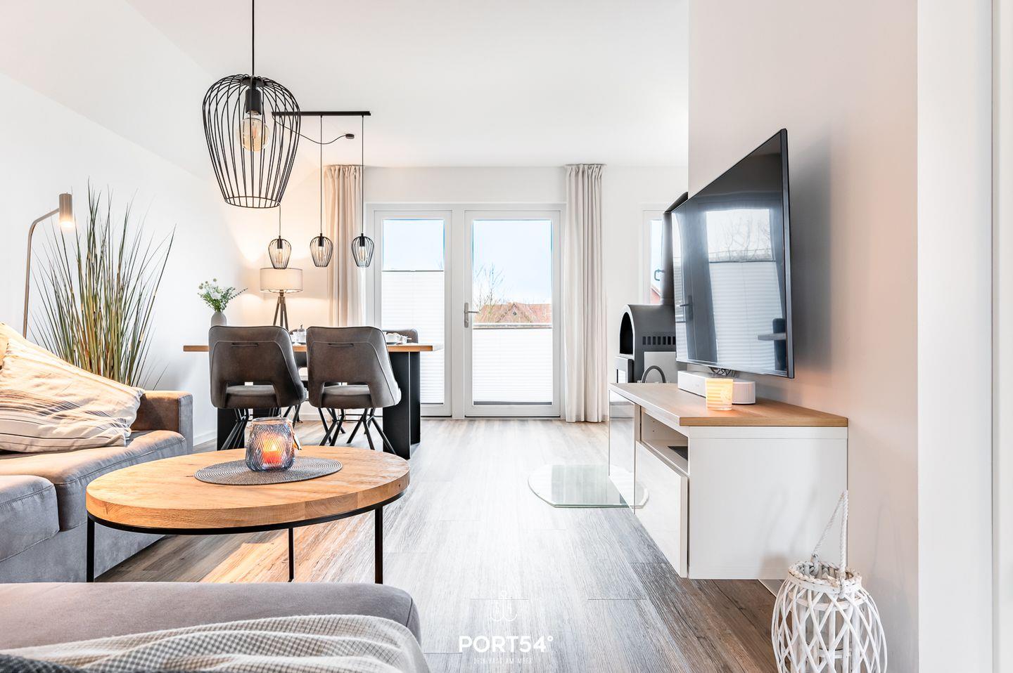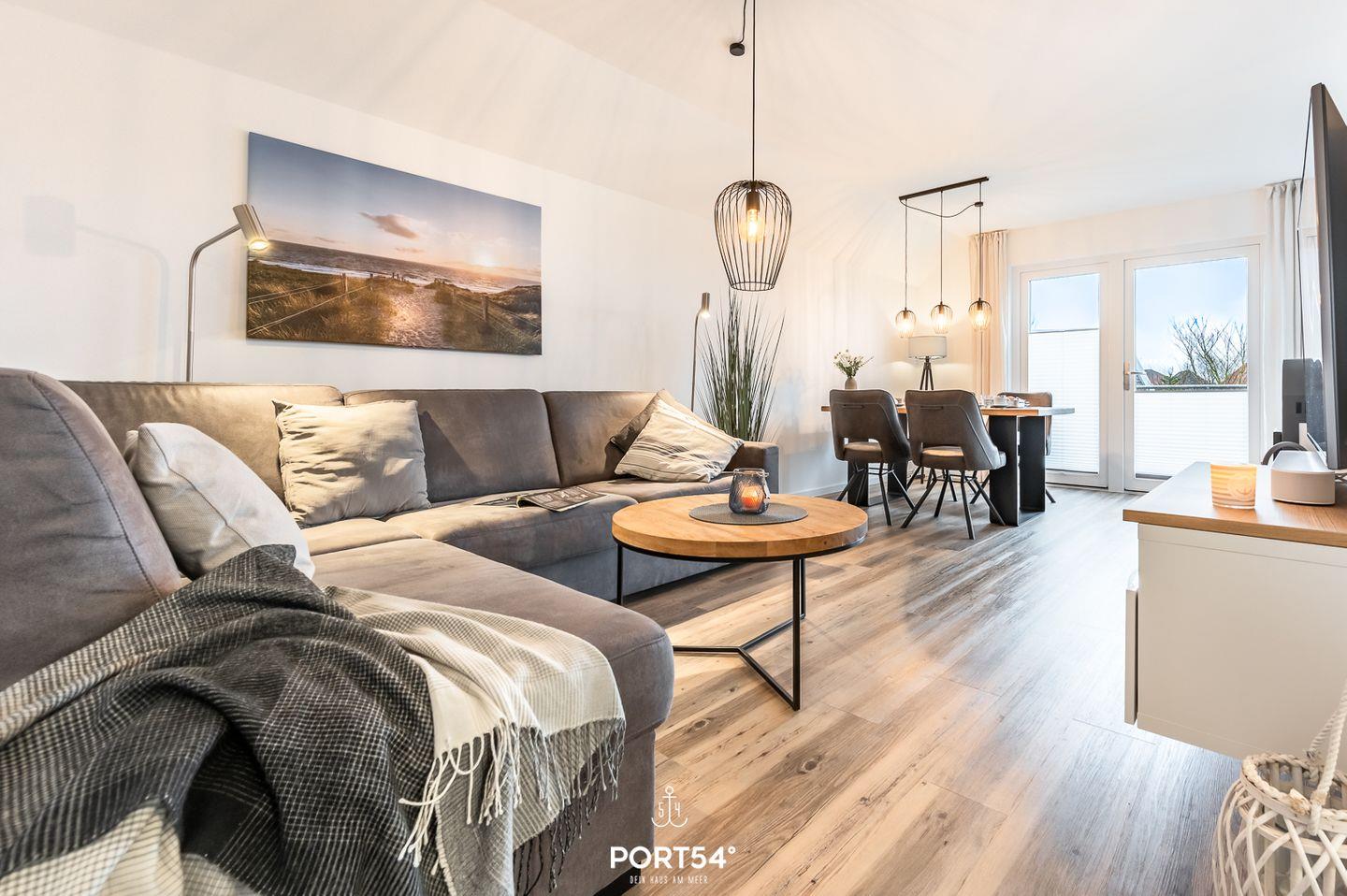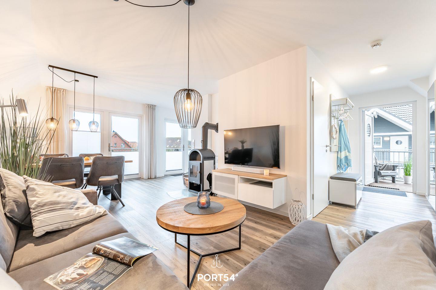 Verbringen Sie in der Ferienwohnung "Strandläufer" einen tollen Urlaub an der Nordsee! Das offen gestaltete Wohnkonzept mit einem Wohnzimmer, einem Essbereich und einer voll ausgestatteten Küche lädt zu gemeinsamen Aktivitäten ein. Im Wohnzimmer können Sie es sich auf dem Schlafsofa (150x200cm) mit TV an einem kalten Abend vor dem wohlwärmenden Kamin gemütlich machen. In der Ferienwohnung stehen Ihnen 2 Schlafzimmer zur Verfügung. Das eine Zimmer ist mit einem Doppelbett (180x200cm) eingerichtet und das andere Zimmer mit 2 Einzelbetten (je 90x200cm). Für unsere kleinsten Gäste steht ein Hochstuhl und ein Reisebett zur Verfügung. Das Badezimmer hat sowohl eine Dusche als auch eine Badewanne und ist darüber hinaus, als ein weiteres Highlight, mit einer Infrarotsauna ausgestattet. Der großzügige Balkon mit Gartentisch und Stühlen sowie einem Strandkorb lädt zum geselligen Frühstück an frischer Nordseeluft ein. Für gemütliche Grillabende im Freien steht ein Elektrogrill zur Verfügung.