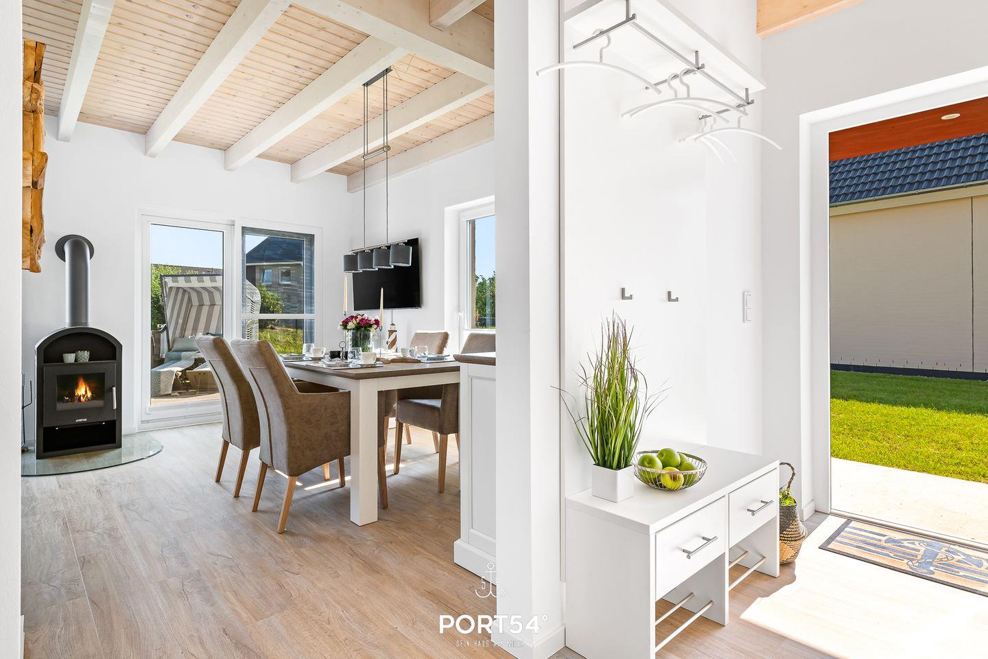 Watt´n Huus! Auf zwei Etagen und ca. 88m² Wohnfläche bietet dieses moderne und hochwertig ausgestattete Ferienhaus Platz für bis zu vier Personen. Im Erdgeschoss erwartet Sie ein offener Wohn- und Essbereich mit Zugang zur Terrasse, eine vollausgestattete Küche sowie ein Tageslicht-Duschbad mit ebenerdiger Dusche und Infrarot-Sauna. Zwei Schlafzimmer im Obergeschoss, wovon eins mit Doppelbett (180x200cm) und das andere mit zwei Einzelbetten (je 90x200cm) ausgestattet ist, bieten erholsame Nächte. Die voll verdunkelbaren, mit Insektenschutzgittern ausgestatteten Fenster fördern eine angenehme Nachtruhe. Das ebenfalls im Obergeschoss gelegene Wannenbad lädt zur Entspannung ein. Für die kleinsten Gäste steht ein Hochstuhl und ein Kinderreisebett zur Verfügung. Auf der vollmöblierten Terrasse mit angrenzender Rasenfläche lassen sich sonnige Tage oder laue Abende am Kohle-Grill verbringen. Direkt vor dem Haus steht ein eigener, kostenfreier Parkplatz zur Verfügung. Mitgebrachte, oder vor Ort ausgeliehene Fahrräder können im abschließbaren Fahrradschuppen direkt vor dem Haus untergestellt werden. Sollten Sie Ihren Nordseeurlaub mit der ganzen Familie und Freunden verbringen wollen, können wir Ihnen durch die Verwaltung mehrerer Objekte auch eine Symbiose aus 2 nebeneinander liegenden Ferienwohnungen ermöglichen.