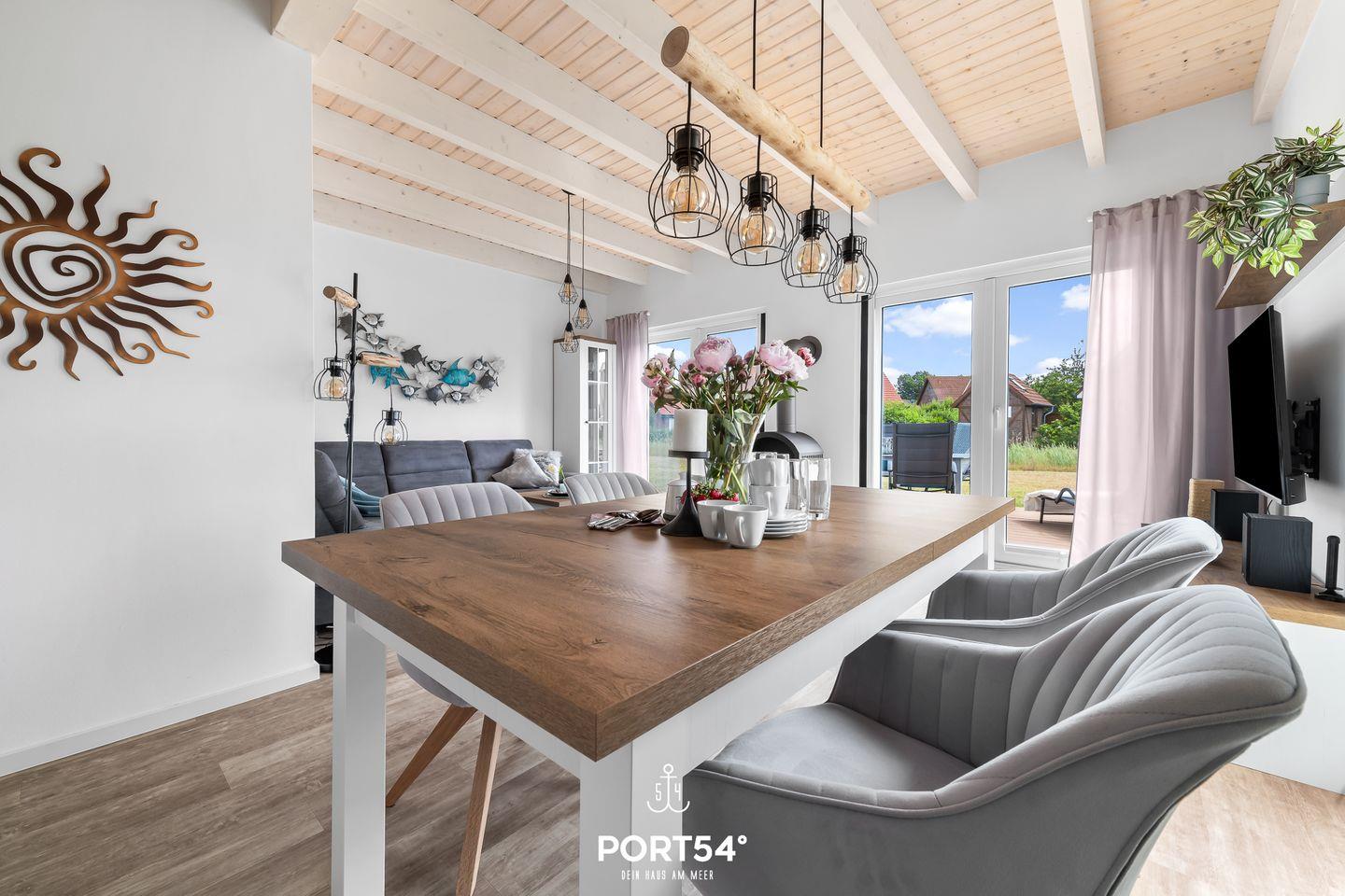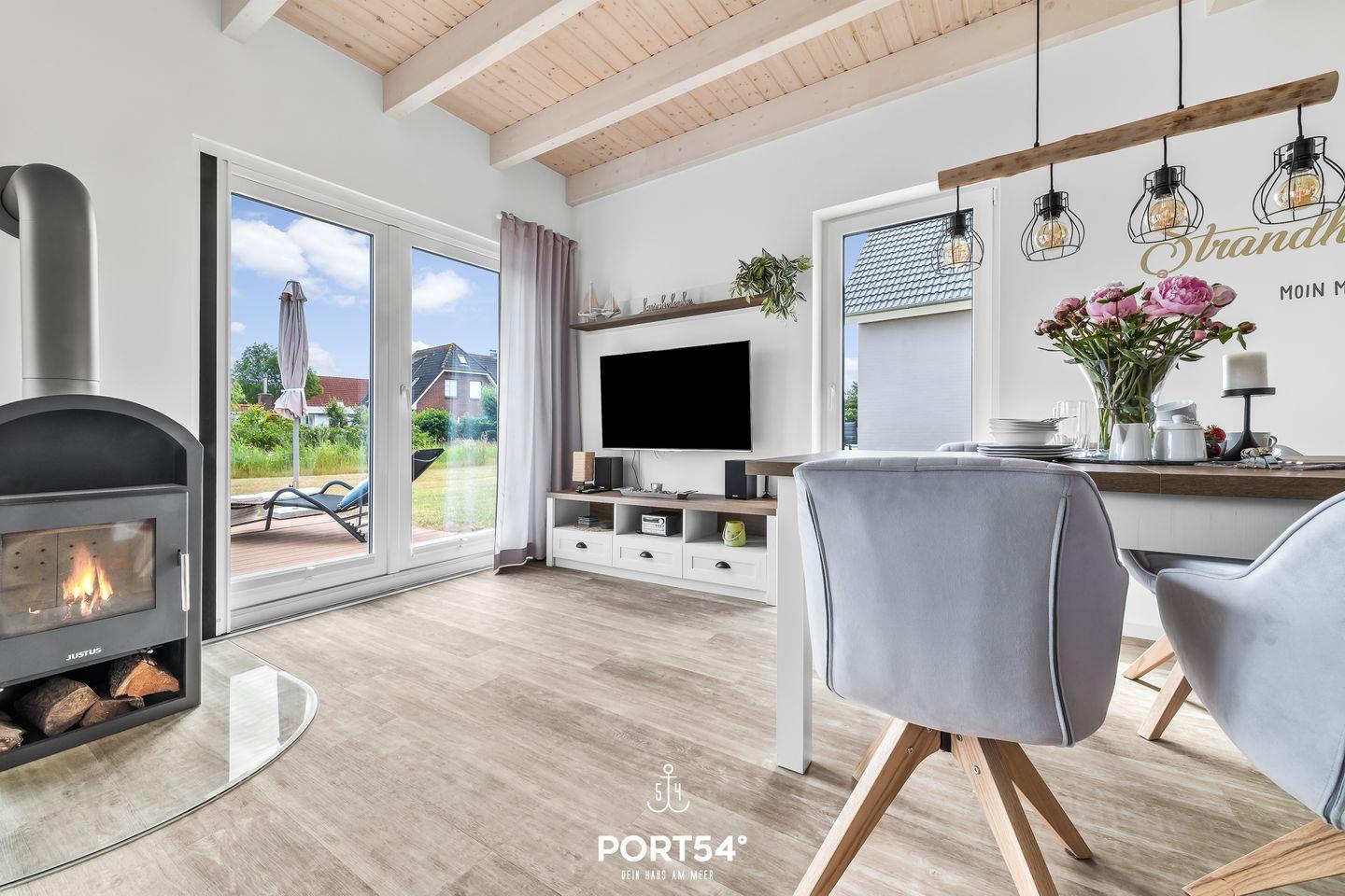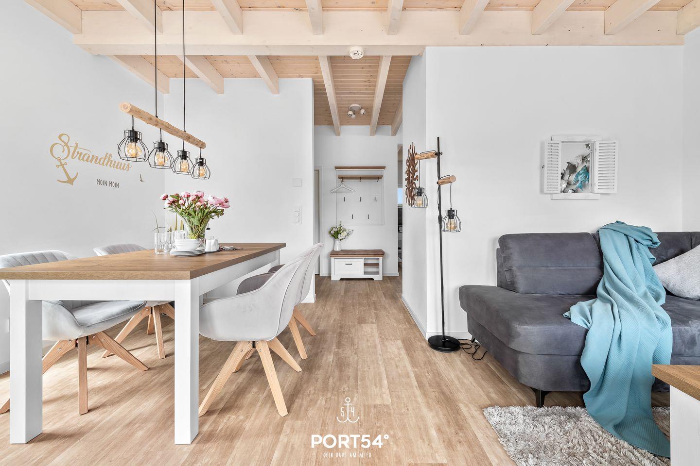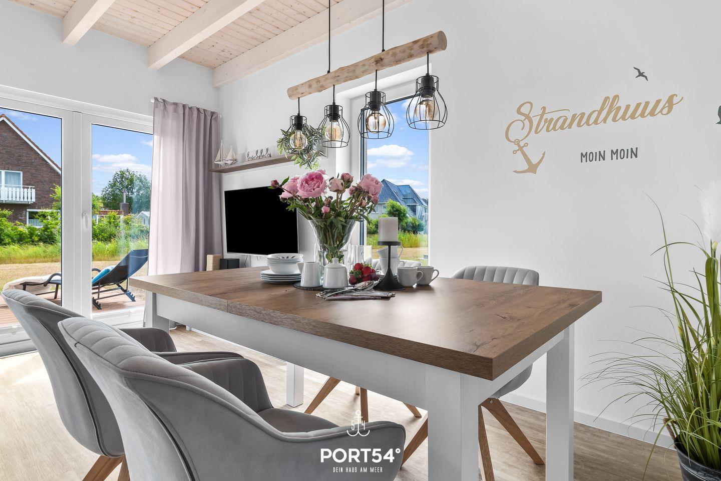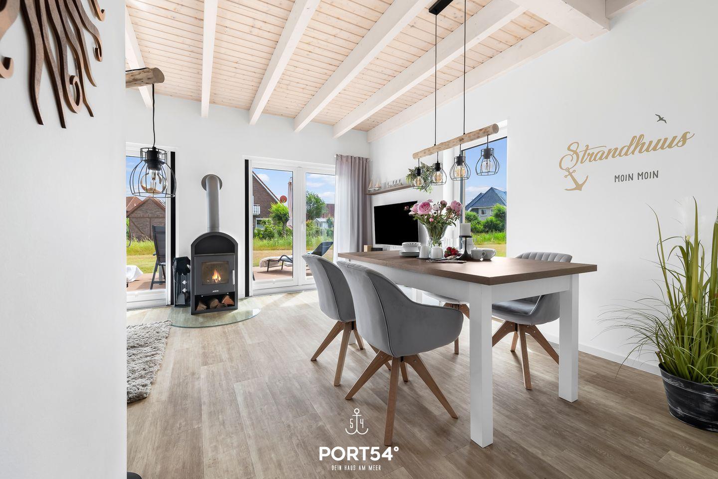 Das "Strandhuus" bietet auf 88m² über zwei Etagen Platz für bis zu 4 Personen. Im EG erwartet Sie ein offener Wohn- und Essbereich mit Zugang zur Terrasse, eine vollausgestattete Küche sowie ein Bad mit ebenerdiger Dusche & Infrarot-Sauna. 2 Schlafzimmer im OG, wovon eins mit einem Doppelbett & das andere mit zwei Einzelbetten ausgestattet ist. Das im OG gelegene Wannenbad lädt zur Entspannung ein.Auf der Terrasse mit angrenzender Rasenfläche lassen sich sonnige Tage verbringen. Hunde Willkommen