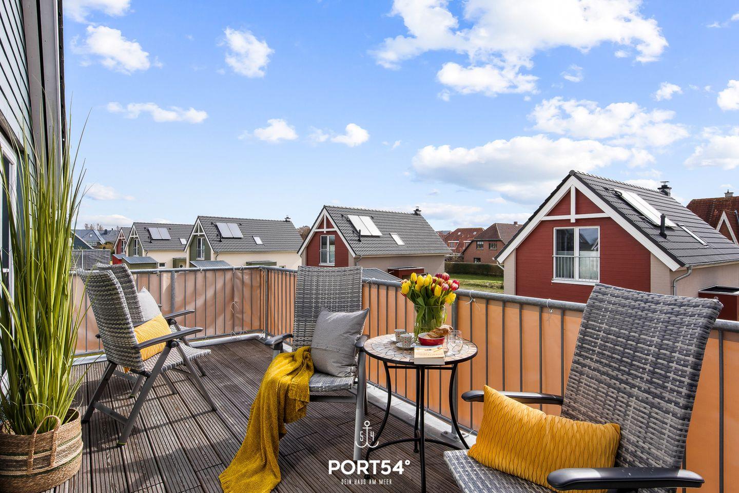 Der großzügige Balkon lädt zu geselligen Frühstücken an der frischen Nordseeluft ein und durch den Elektrogrill können Sie auch abends ein tolles Menü unter freiem Himmel zaubern und dabei die vorbeiziehenden Möwen im Strandkorb beobachten.