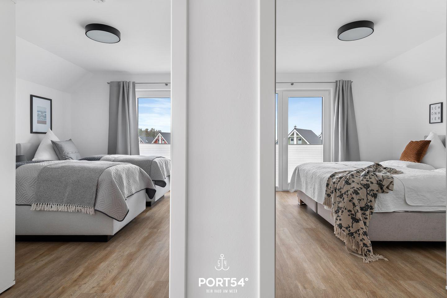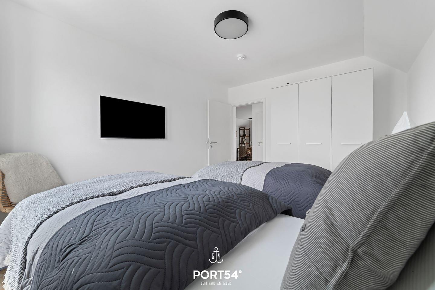Kaffeemaschine (Nespresso-Maschine) Wasserkocher, Toaster und Mikrowelle ausgestattet. Die Wohnung verfügt über zwei Schlafzimmer. Das erste Schlafzimmer ist mit einem Doppelbett ausgestattet, das zweite Schlafzimmer mit 2 Einzelbetten. Beide Schlafzimmer sind mit jeweils einem Smart-TV ausgestattet. In beiden Schlafräumen gibt es Verdunkelungsmöglichkeiten, damit Sie in Ihrem Urlaub einen erholsamen Schlaf haben. Im Badezimmer erwartet Sie eine Infrarot-Sauna, eine ebenerdige Dusche und eine Badewanne. Hier finden Sie Ihre eigene kleine Wellnessoase. Für die kleinen Gäste ist ebenfalls gut gesorgt: Die Wohnung verfügt über einen Hochstuhl und ein Kleinkinderreisebett. Der schöne, große Balkon ist der perfekte Platz für einen Grillabend. Es ist ein Elektrogrill vorhanden, sowie ein Gartentisch mit 5 Gartenstühlen und Polstern.