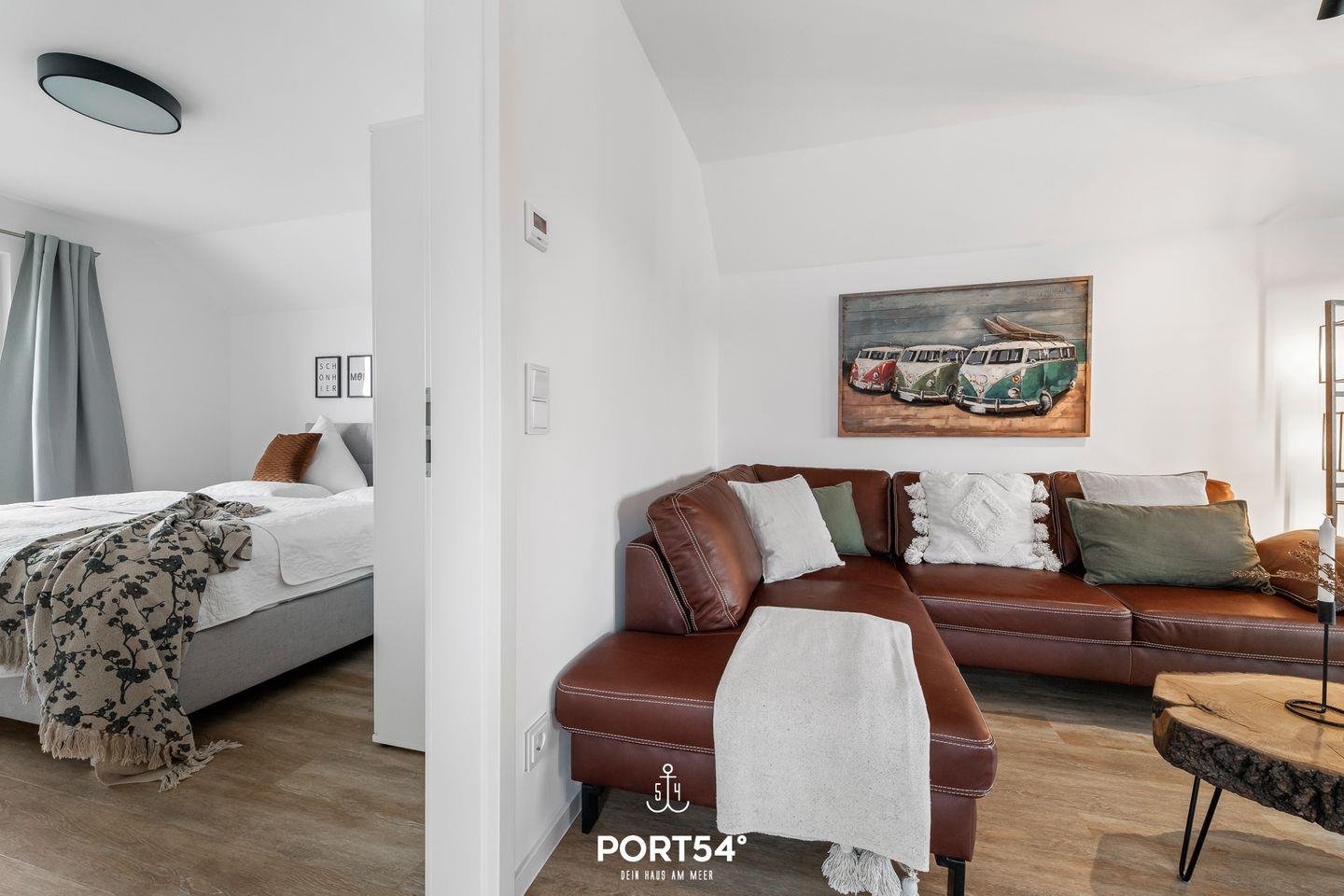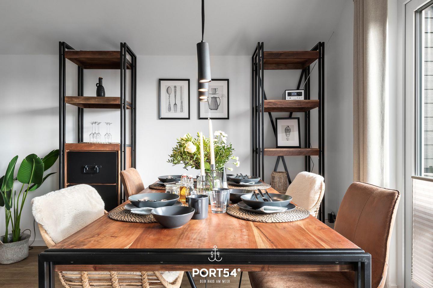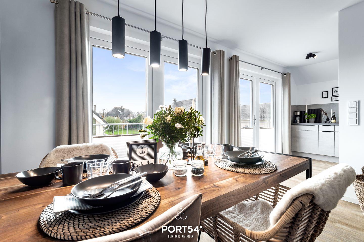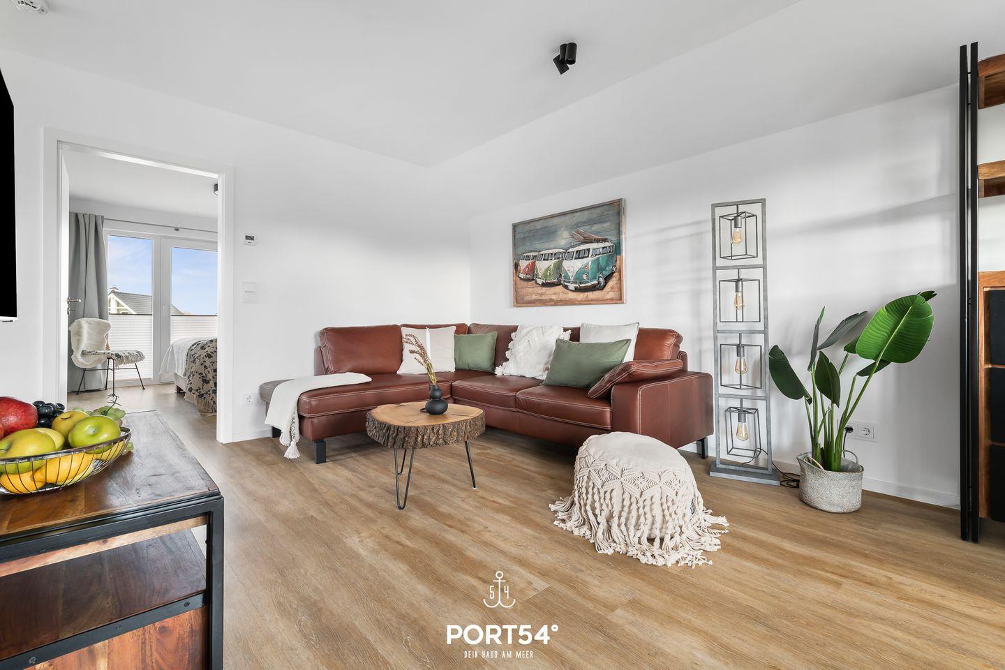 Die charmante Ferienwohnung "Seekiste" bietet auf ca. 80m² Platz für bis zu 6 Personen. Das moderne Wohnzimmer bietet einen großen Esszimmertisch mit Sitzmöglichkeiten für 6 Personen. Der Kamin spendet besonders in den Wintermonaten eine wohlige Wärme. Für Ihre Unterhaltung finden Sie im Wohnzimmer auch einen Smart-TV. Die hochwertige Küche ist u.a. mit einer Waschmaschine, Geschirrspüler, Backofen,
