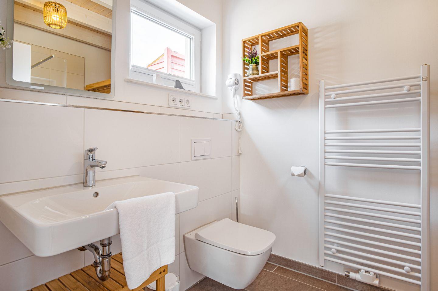 Das exklusive Ferienhaus "WattWächter" bietet auf ca. 88m² Platz für bis zu 6 Personen. Im EG erwartet Sie ein offener Wohn- und Essbereich mit Zugang zur Terrasse, eine vollausgestattete Küche, sowie ein Duschbad mit ebenerdiger Dusche & Infrarot-Sauna. 2 Schlafzimmer im OG, wovon beide mit einem Doppelbett ausgestattet sind. Das im OG gelegene Wannenbad lädt zur Entspannung ein. Auf der Terrasse mit angrenzender Rasenfläche lassen sich sonnige Tage verbringen.
