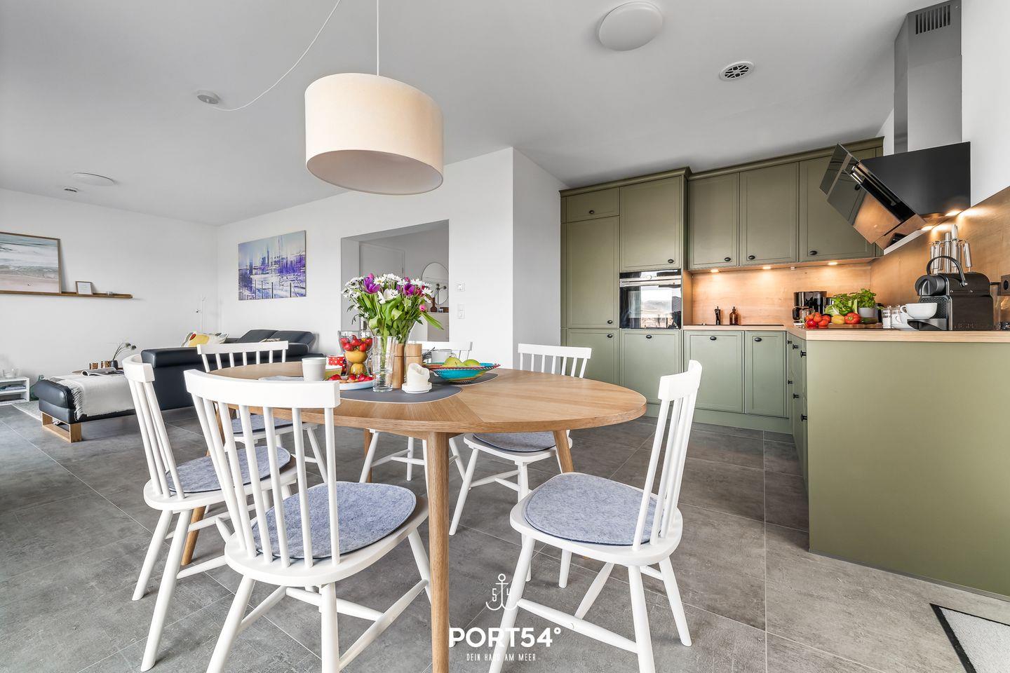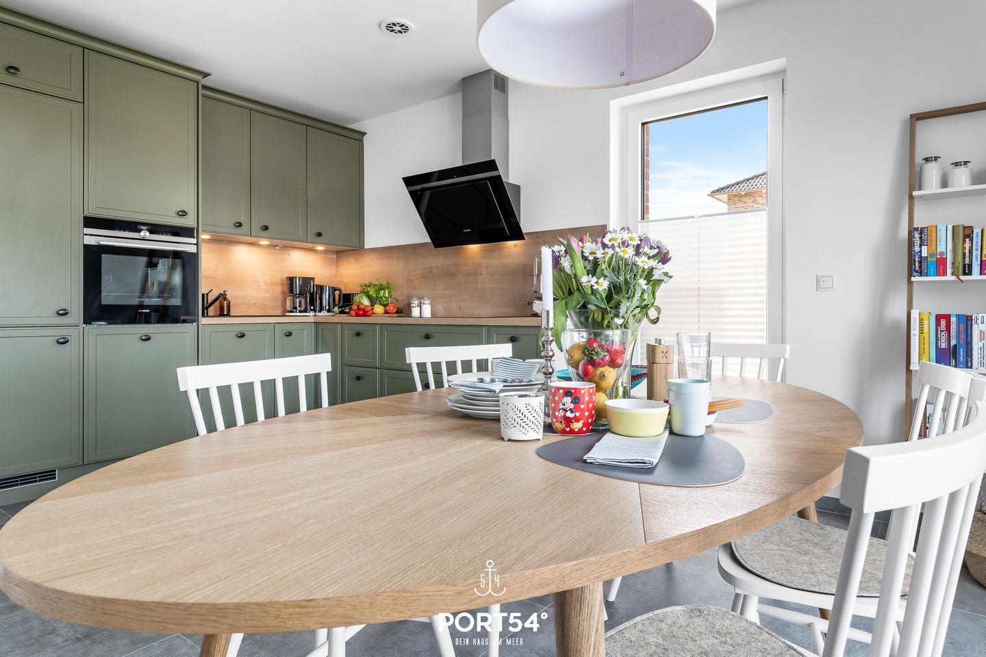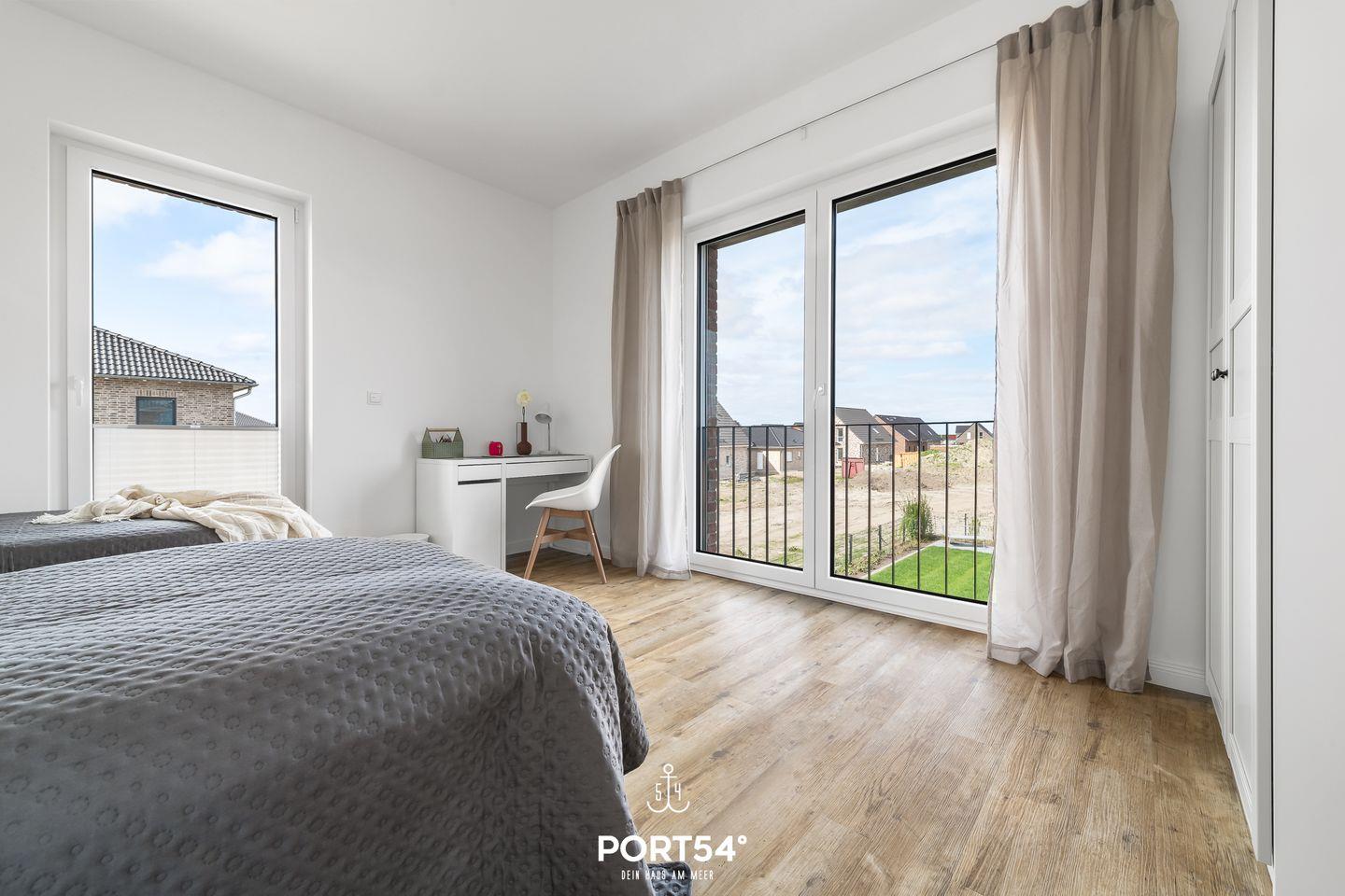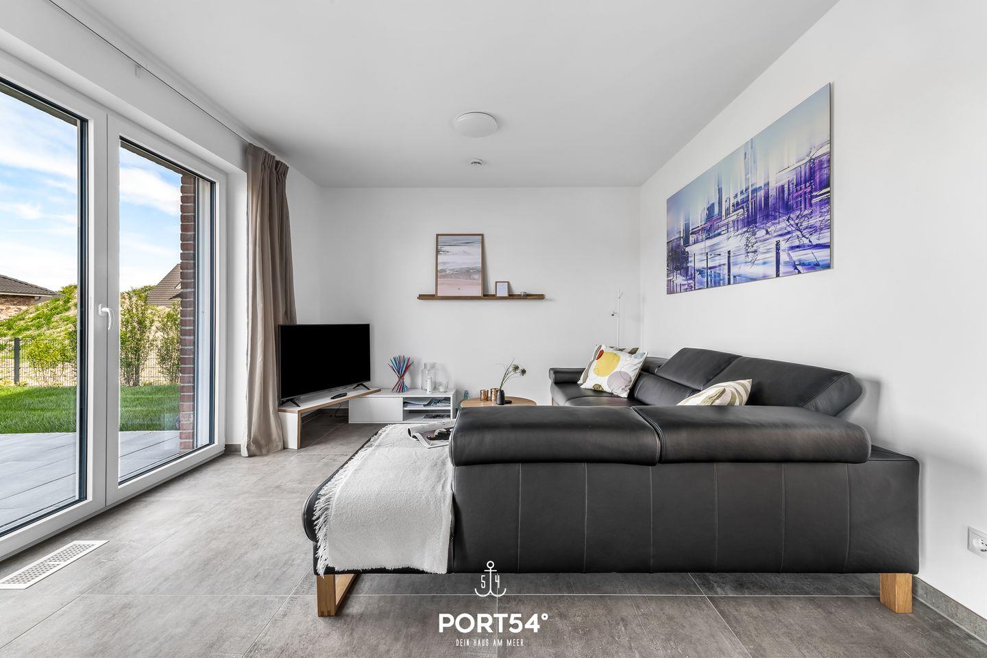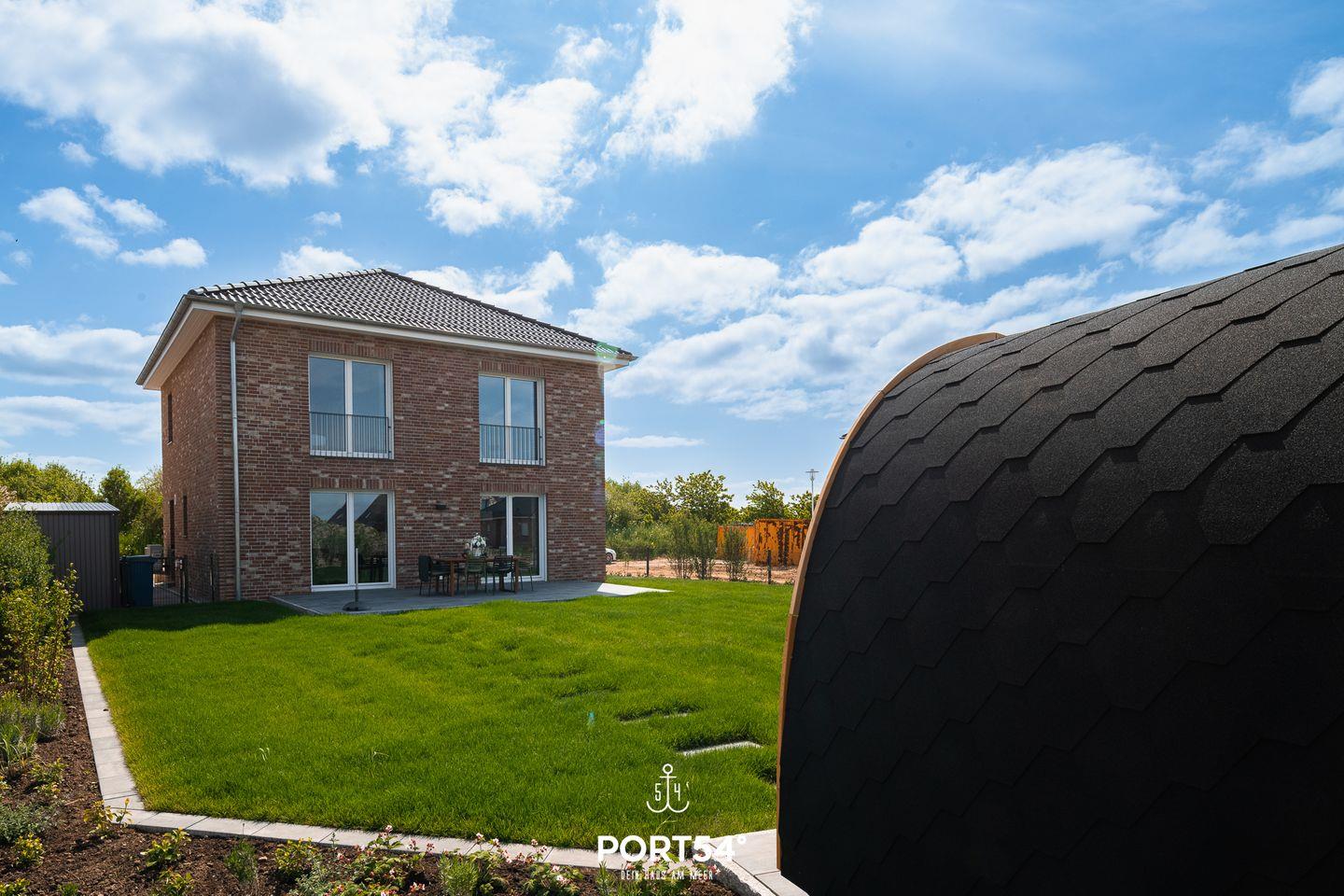 Dein Zuhause am Meer in Büsum: Herzlich willkommen in diesem modernen und hochwertig ausgestatteten Ferienhaus in Büsum. Fühlen Sie sich hier wie zu Hause! In Top-Lage in Büsum bietet dieses Haus auf 133 m² luxuriösen Nordseeurlaub der Extraklasse. Neben einem großen, lichtdurchfluteten Wohnbereich mit Panoramafenstern und angrenzender Küche und Essbereich, bietet "Dein Zuhause am Meer" drei Schlafzimmer und zwei Bäder. In der voll ausgestatteten Küche von Nolte finden Sie alles, was für den nächsten Kochabend benötigt wird. Hier wird wie überall im Haus auf Qualität geachtet, das Geschirr ist von Villeroy & Boch, Toaster und Wasserkocher von Braun und auch sonst finden Sie alles was das Herz begehrt. Im angrenzenden Wohnbereich können Sie es sich auf der Echtledercouch von Ewald Schillig gemütlich machen. Der Bioethanol-Ofen spendet mollige Wärme, wenn Sie im Winter nach einem ausgiebigen Spaziergang nach Hause kommen. Zwei der Schlafzimmer verfügen über Doppelbetten (je 180×200cm), das dritte über zwei Einzelbetten (je 90×200cm) und im vierten Schlafzimmer befindet sich ein Hemnes-Bett mit 80x200cm und ausgezogen 160x200cm (jeweils mit Lattenrost und Matratze). Alle 4 Schlafzimmer sind mit Verdunklungsmöglichkeiten und zwei mit Smart-TVs ausgestattet. Da die Räume über eine Pluggit Belüftungsanlage verfügen ist kein selbständiges Lüften notwendig, somit ist das Haus sehr Allergiker freundlich. Weitere Vorteile des automatischen Be-& Entlüftens sind, dass keine Mücken und anderes Ungeziefer ins Haus kommen und dass keine Zugluft z.B. bei starkem Wind durchs Haus zieht. Ein Badezimmer befindet sich im Erdgeschoss, dieses verfügt über eine XL-Dusche, WC, Föhn und einen Handtuchtrockner. Das zweite moderne Wellnessbad im Obergeschoss ist mit einer ebenerdigen Dusche, Föhn, Handtuchtrockner und einer Badewanne zum Entspannen ausgestattet. Für unsere kleinen Gäste ist auch gesorgt: Babybett inkl. Matratze, Hochstuhl, Bücher und Spiele (Brett-& Kartenspiele, Lego Duplo) sind vorhanden. Auf der Terrasse können Sie dank des Weber Holzkohlegrills ganz entspannte Abende genießen. Für das Reisebett muss, falls gewünscht, eigenes Bettzeug mitgebracht werden. Ein weiteres Highlight ist die Außensauna im Garten: diese bietet Platz für 2 Personen im Liegen oder 4 im Sitzen und ist der perfekte Ort, um nach einem schönen Tag in Büsum einfach mal die Seele baumeln zu lassen. Direkt vor dem Haus befinden sich zwei Parkplätze für Ihren PKW. Außerdem befindet sich in unmittelbarer Nähe ein großer öffentlicher Parkplatz mit einer E-Ladesäule. Abstellraum für mitgebrachte Fahrräder und Co. bietet der Biohort am Haus, hier finden Sie auch einen Bollerwagen und zwei Fahrräder.