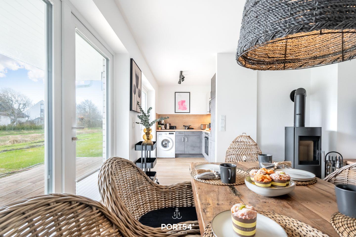 Im Erdgeschoss gelegen bietet der "Diek No. 2" im Nordseeresort neben zwei Schlafzimmern, einem geräumigen Wohn- und Essbereich, einer Küche, einem Badezimmer auch eine vollmöblierte Sonnenterrasse. Das helle Wohnzimmer bietet auf der gemütlichen Couch die besten Möglichkeiten vor dem Kamin zu entspannen. Auch in der Infrarot-Sauna können Sie sich nach einem langen Strandspaziergang entspannen. Beide Schlafzimmer sind mit Doppelbetten (je 180x200cm) ausgestattet. Durch die voll verdunkelbaren, mit Insektenschutz ausgestatteten Fenster steht einer erholsamen Nachtruhe nichts im Wege. In der vollausgestatteten Küche lassen sich gesellige Kochabende veranstalten. Für die kleinen Gäste steht ein Hochstuhl und ein Kinderreisebett zur Verfügung. Auch Ihre Fellnasen sind herzlich Willkommen! Entspannte Sommertage oder laue Sommerabende - auf der vollmöblierten Terrasse ist für jeden etwas dabei. Auf dem Elektro-Grill kann man sich auch unter freiem Himmel bestens versorgen. Vor der Unterkunft steht ein kostenfreier Parkplatz zur Verfügung. Mitgebrachte oder vor Ort ausgeliehene Fahrräder können im abschließbaren Fahrradschuppen direkt vor dem Haus untergestellt werden.