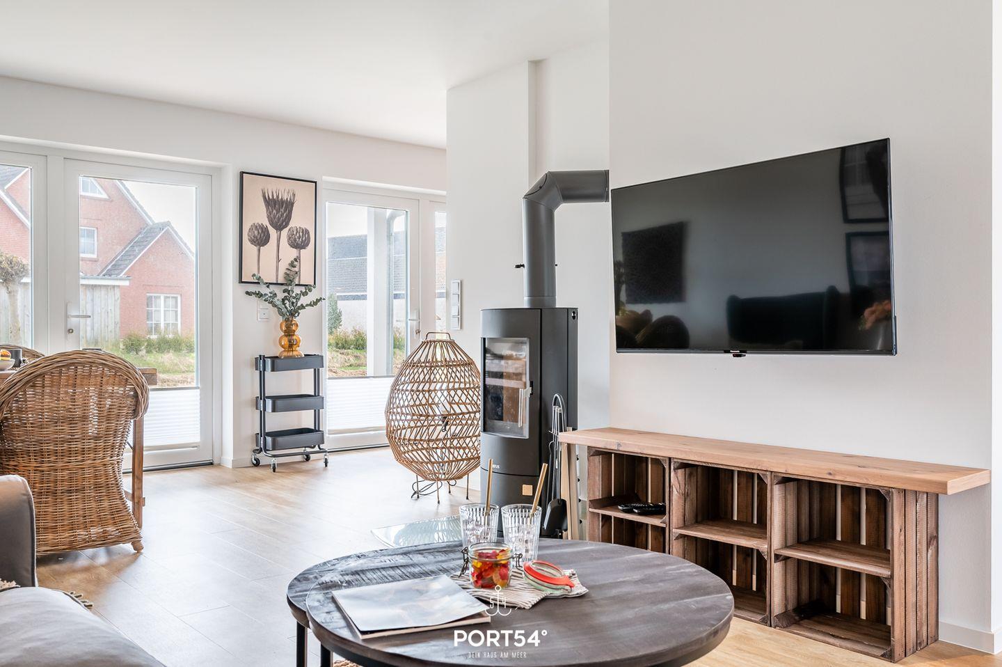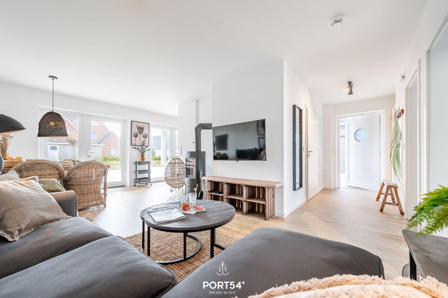 Diek No. 2 im Nordseeresort erwartet Sie auf 80m² offene, lichtdurchflutete Räumlichkeiten in einem gemütlichen Ambiente. Von der voll ausgestatteten Küche mit Essbereich gelangen Sie auf die Terrasse, hier können Sie die Ruhe genießen. Der gemütliche Wohnbereich bietet Ihnen einen Kamin & ein gemütliches Sofa. In einem der beiden Schlafzimmern finden Sie ein Doppelbett & im anderen 2 Einzelbetten vor. Das Wellnessbad verfügt über eine ebenerdigen Dusche & eine Infrarot-Sauna.