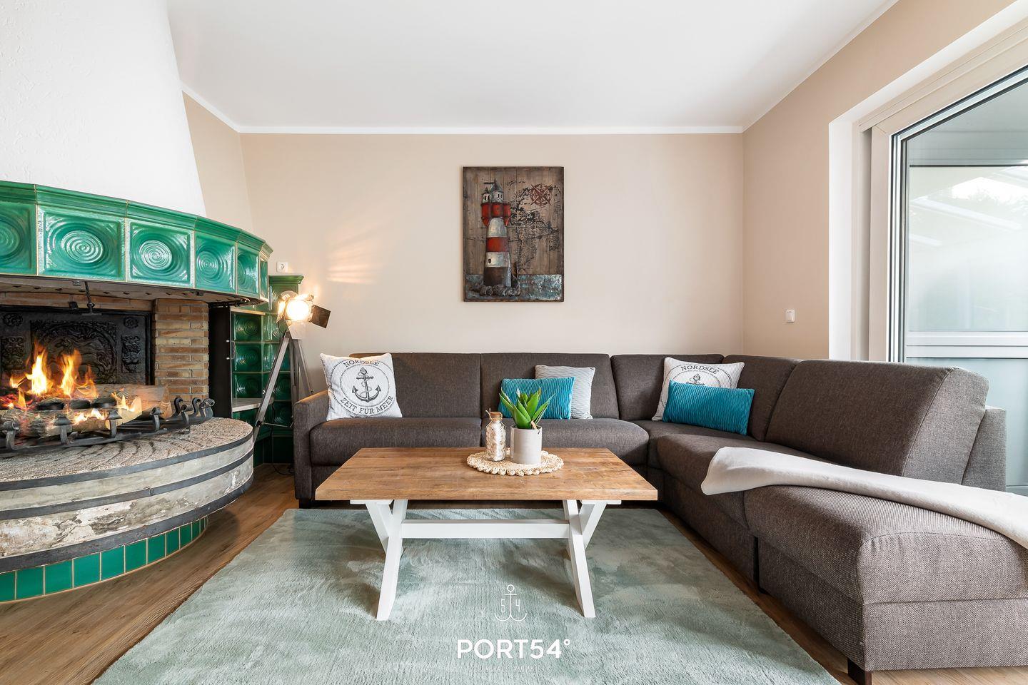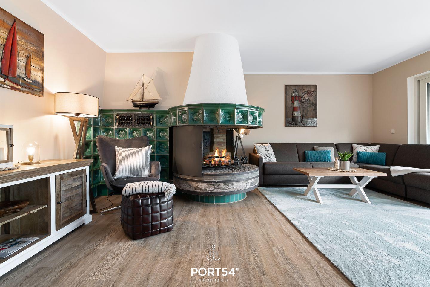 Der offene Kamin im Wohnzimmer dient ausschließlich dekorativen Zwecken und ist nicht als funktionale Feuerstelle nutzbar.