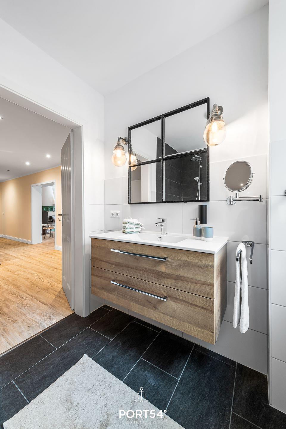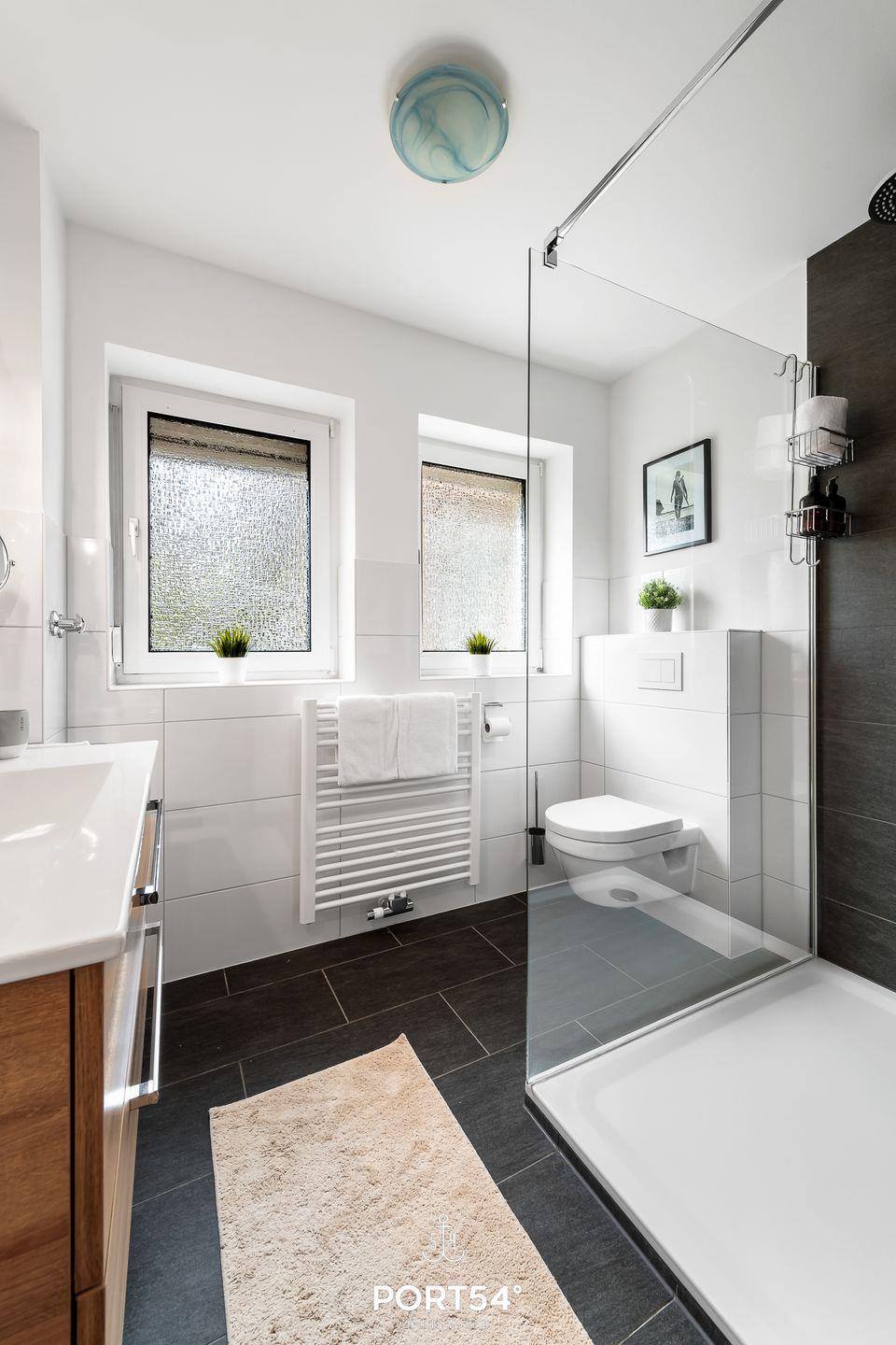 Mit einer Wohnfläche von 110 m² bietet die Ferienwohnung großzügigen Platz für bis zu sechs Personen. Sie verfügt über zwei Schlafzimmer, die für erholsame Nächte sorgen. Ein modernes Badezimmer ist mit einer bodengleichen Dusche und WC ausgestattet. Für zusätzliche Bequemlichkeit stehen eine Waschmaschine und ein Trockner, für eine kleine Gebühr zur gemeinschaftlichen Nutzung bereit. Ebenso wie diverse Haushaltsgeräte wie Bügelbrett und Bügeleisen.