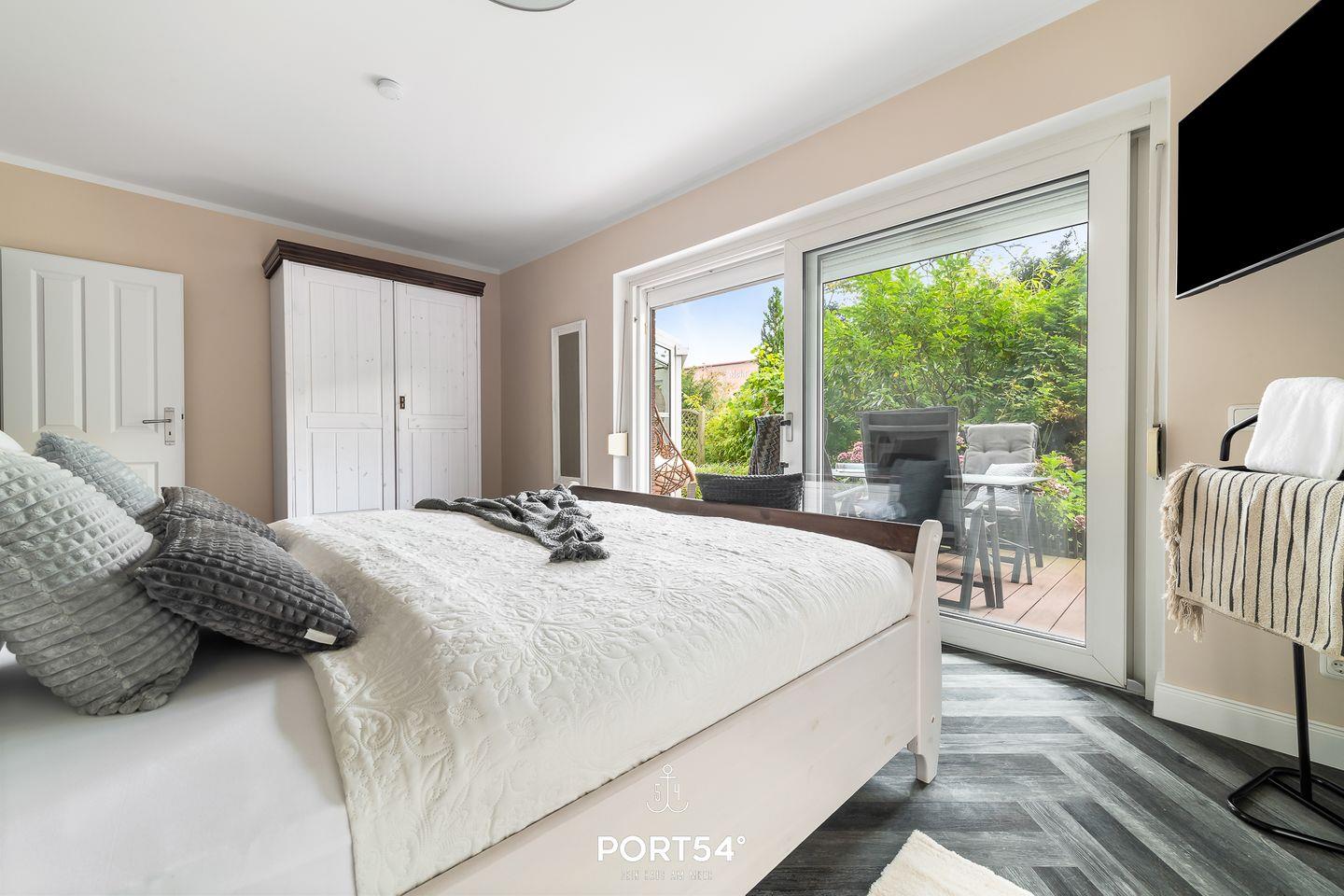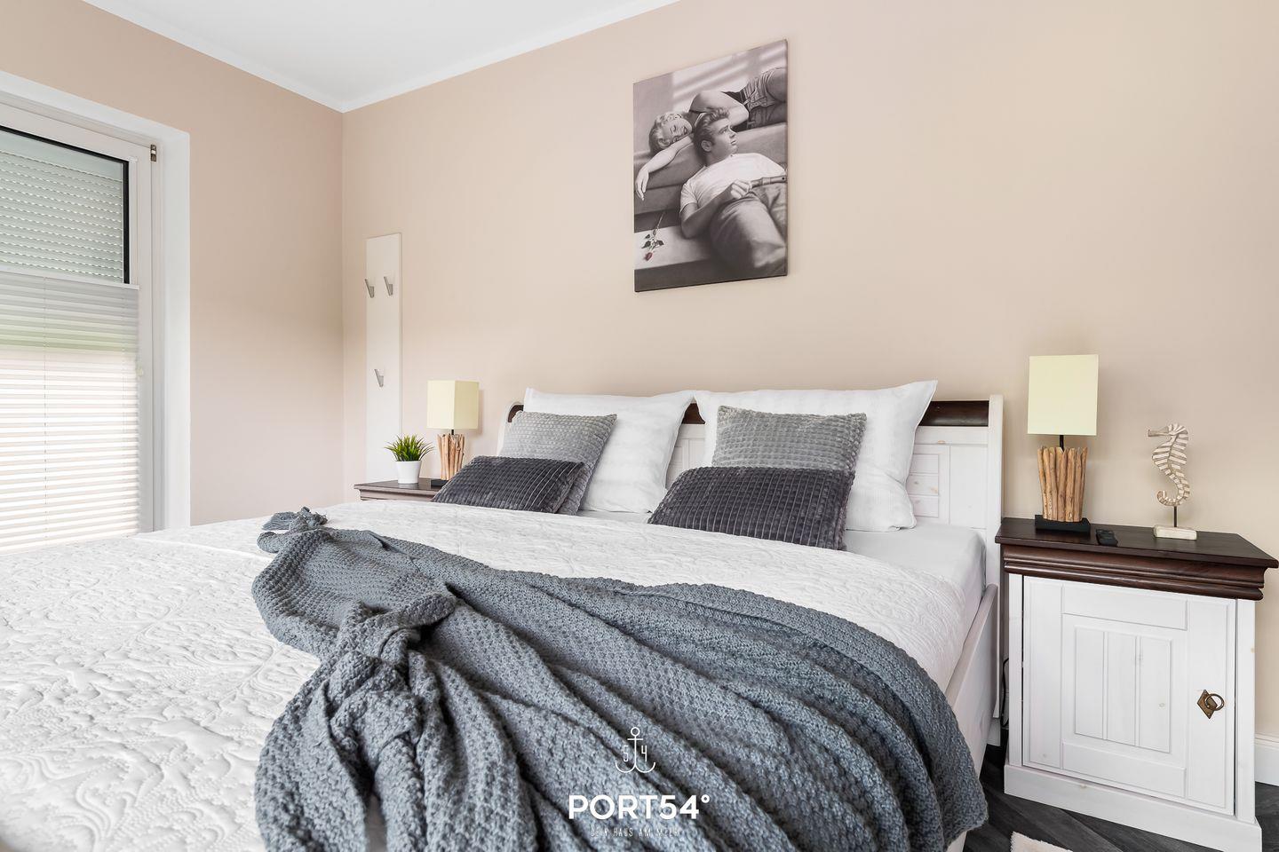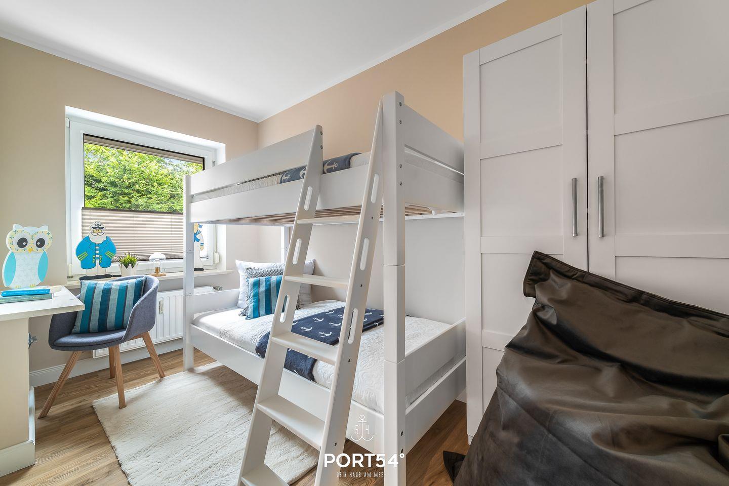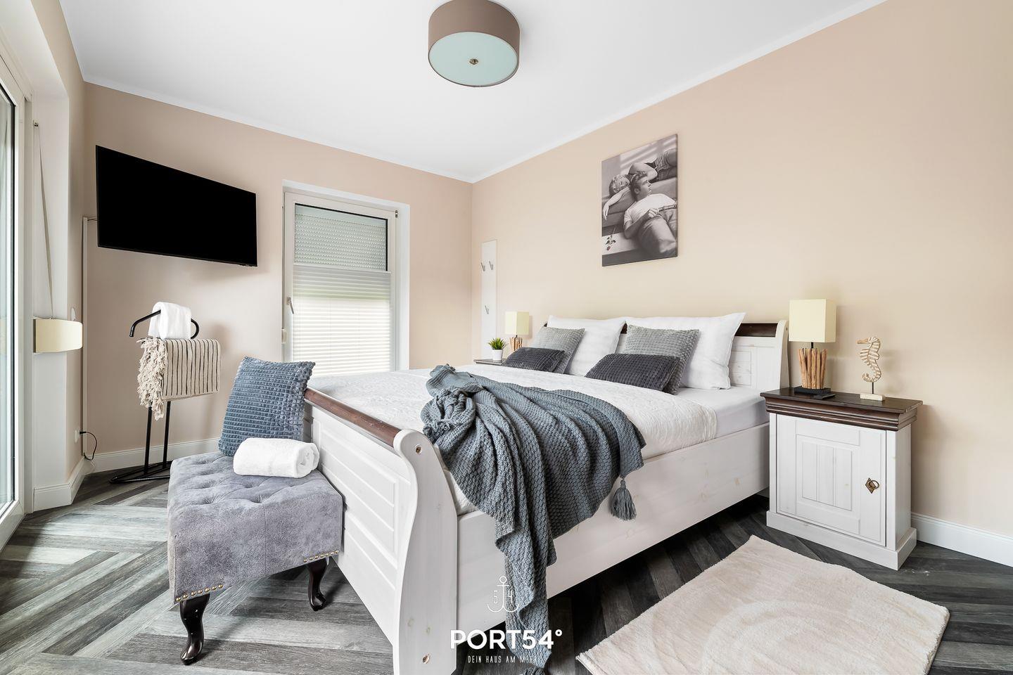 Im ersten Schlafzimmer erwartet Sie ein großes Doppelbett (180x200cm), von hier haben Sie einen direkten Zugang auf die Terrasse. Das zweite Schlafzimmer ist mit einem Etagenbett ausgestattet (je 90x200cm). Das Highlight der Wohnung ist neben der möblierten Terrasse mit Strandkorb, der Wintergarten, welcher auch in der kalten Jahreszeit zur Entspannung einlädt.