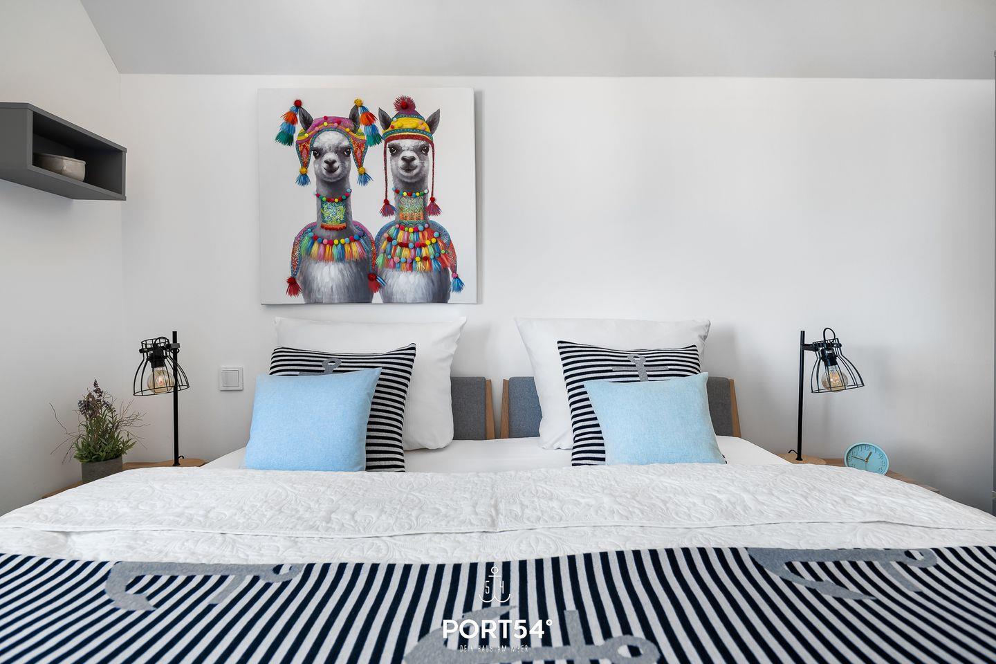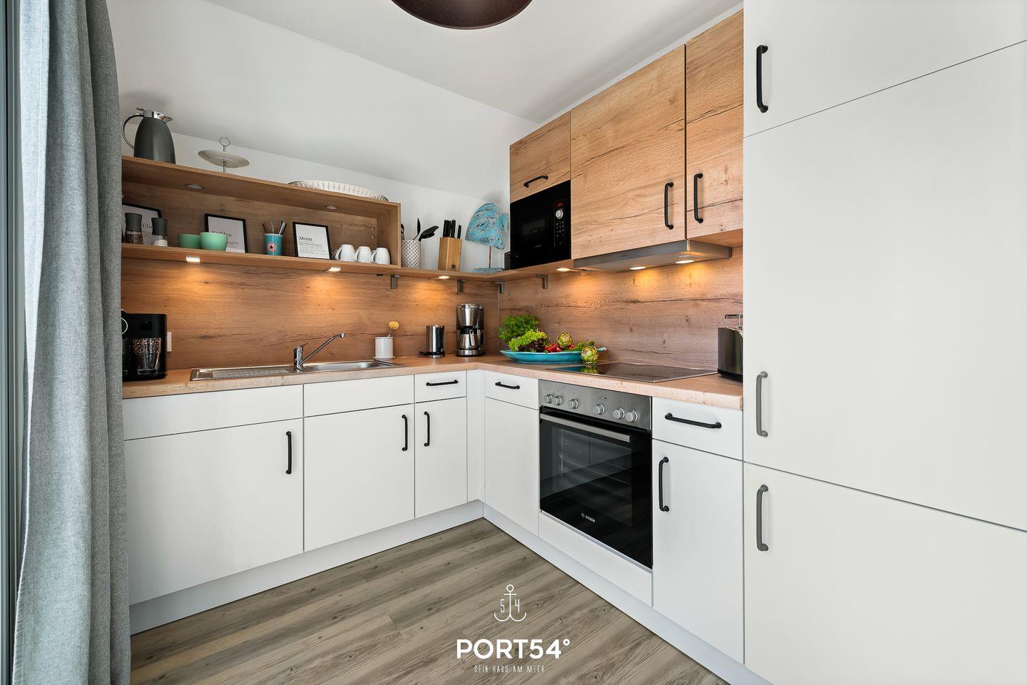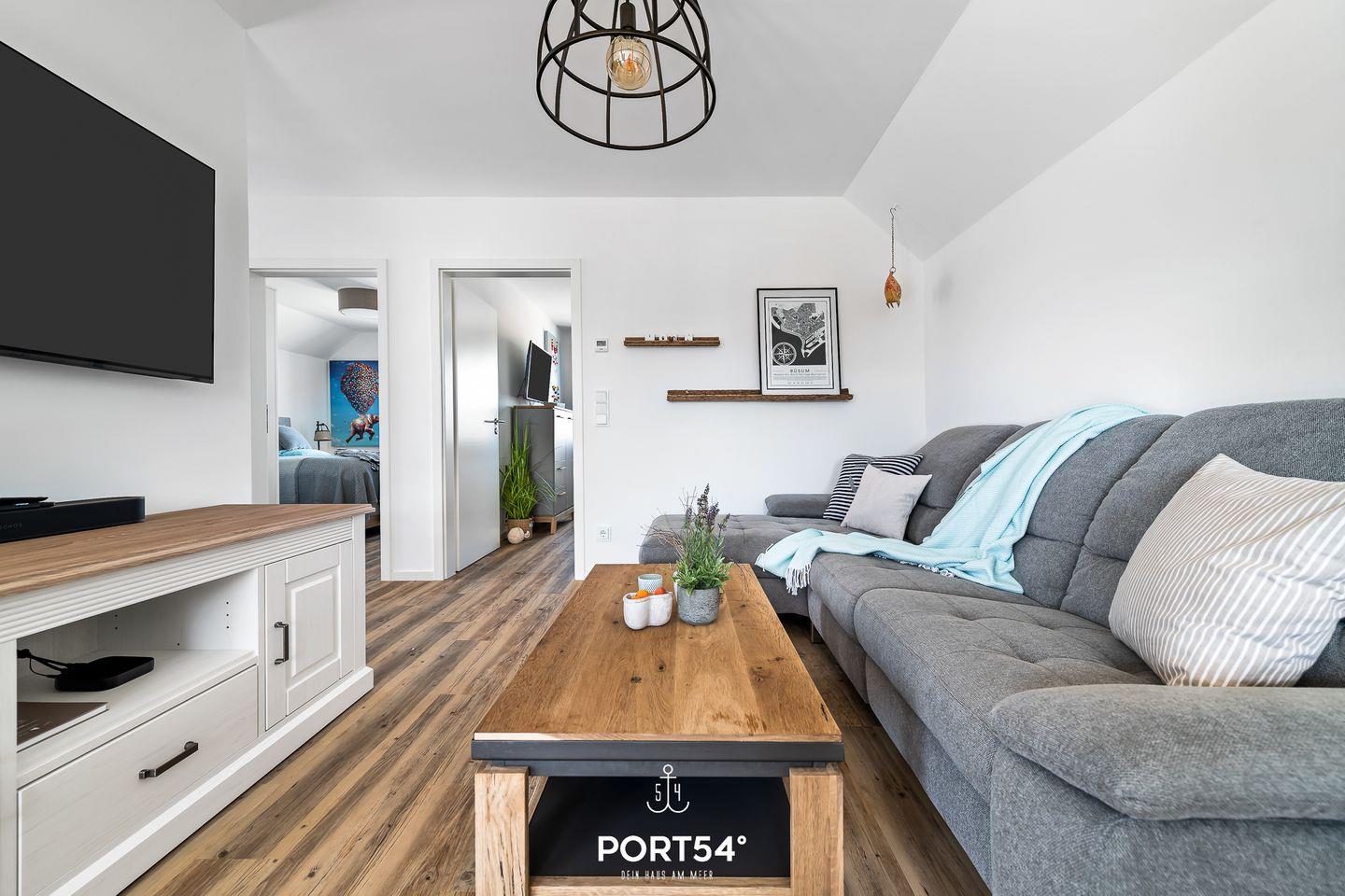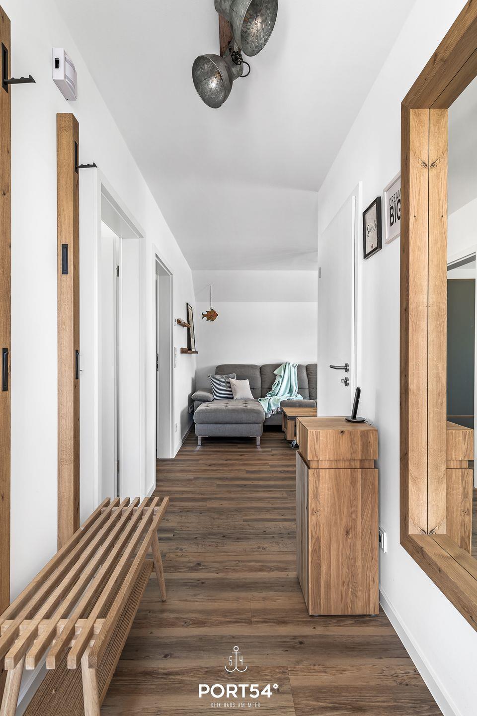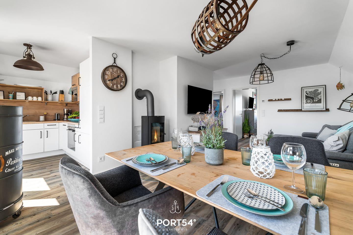 Eine "Kleine Auszeit" bietet die modern und hochwertig eingerichtete Wohnung im Nordsee Resort Büsum. Auf ca. 80m² bietet sie Platz für bis zu 4 Personen. Der Name ist Programm: In dem offenen Wohn-/Essbereich ist ein Kamin zu finden, der bei kalten Wintertagen für einen wohlwärmenden Abend auf dem Sofa sorgt. Der Smart-TV ist für das gute Unterhaltungsprogramm zuständig. Die Wohnung verfügt über zwei Schlafzimmer mit Verdunklungsmöglichkeiten an den Fenstern, eines der Schlafzimmer ist mit einem Doppelbett mit durchgängiger Matratze, das andere mit zwei Einzelbetten ausgestattet und sorgen für einen erholsamen Schlaf. Das Badezimmer mit der Infrarot-Kabine bieten einen weiteren Wellnessfaktor und runden die "Kleine Auszeit" während des Urlaubs perfekt ab. Die Ferienwohnung liegt im Obergeschoss und hat aus dem Wohnzimmer aus einen direkten Zugang zu dem möblierten Balkon, auf dem Sie entweder die Sonne und die Nordseeluft genießen können oder mit einem guten Frühstück in den Tag starten können.