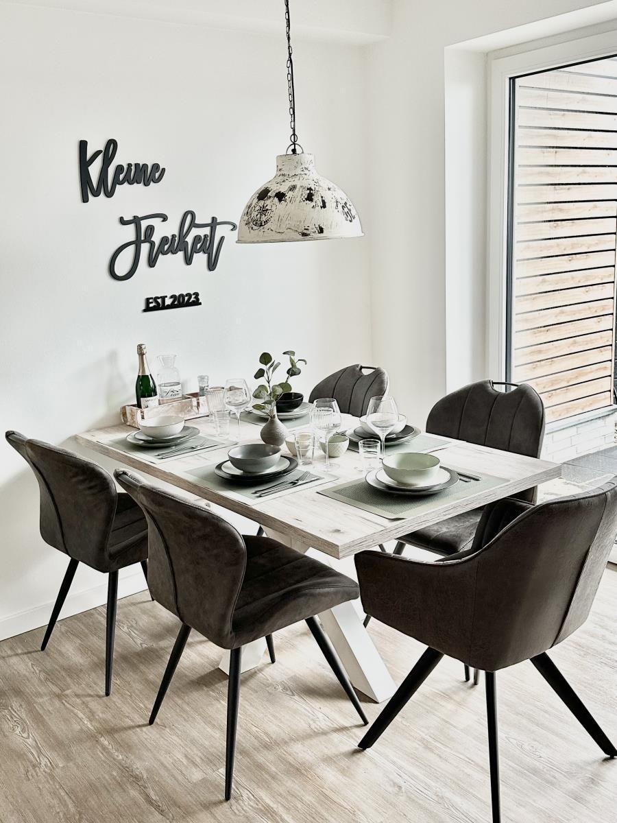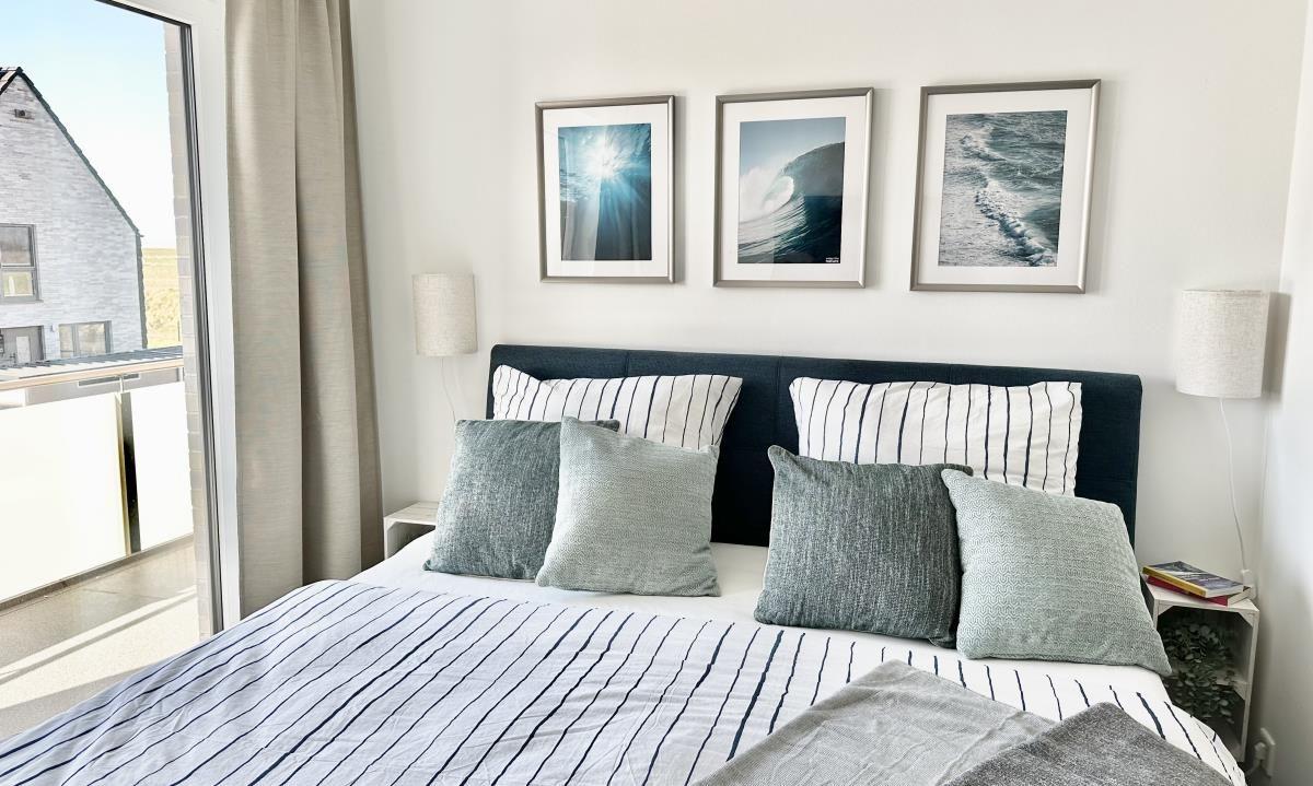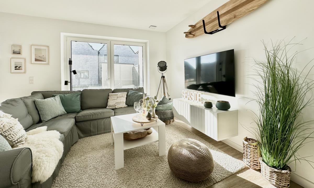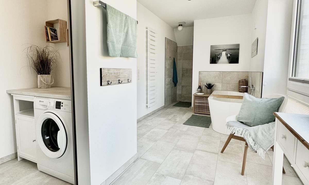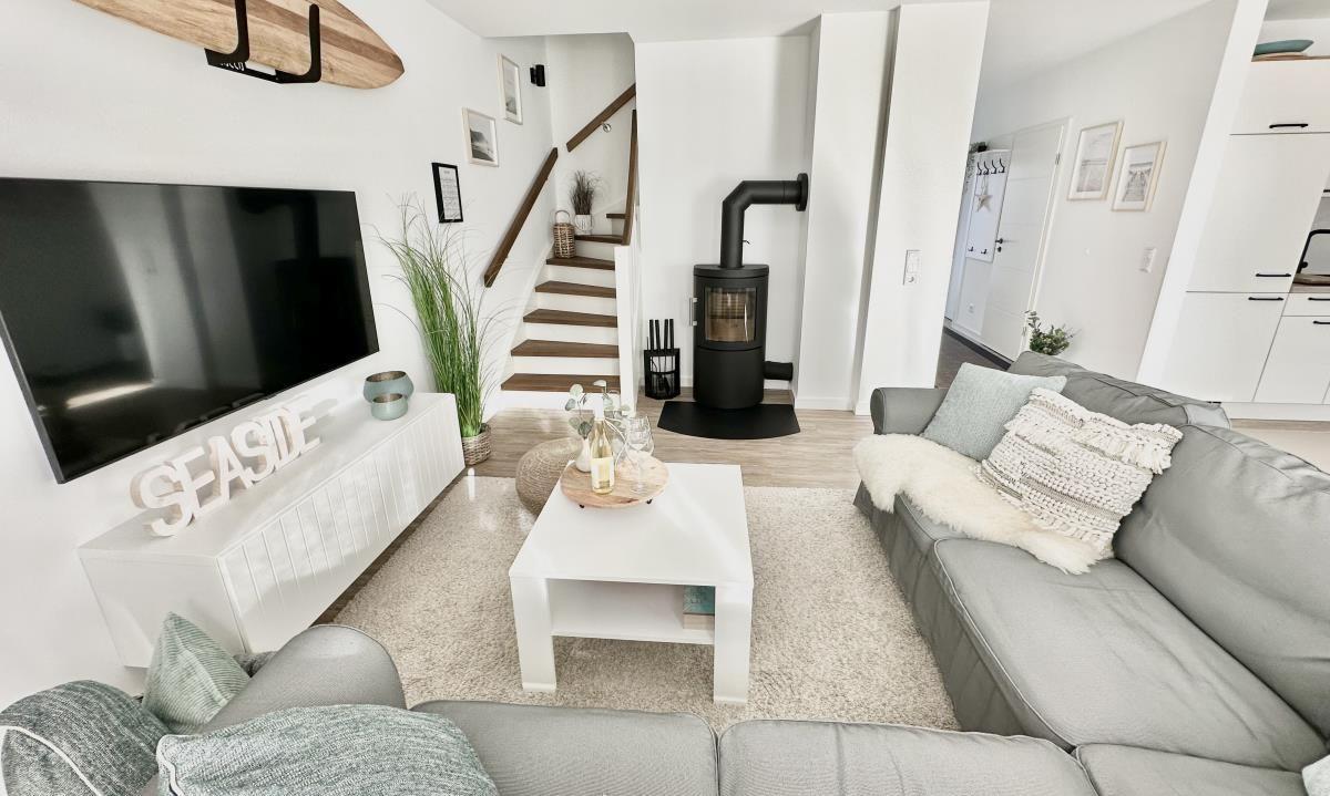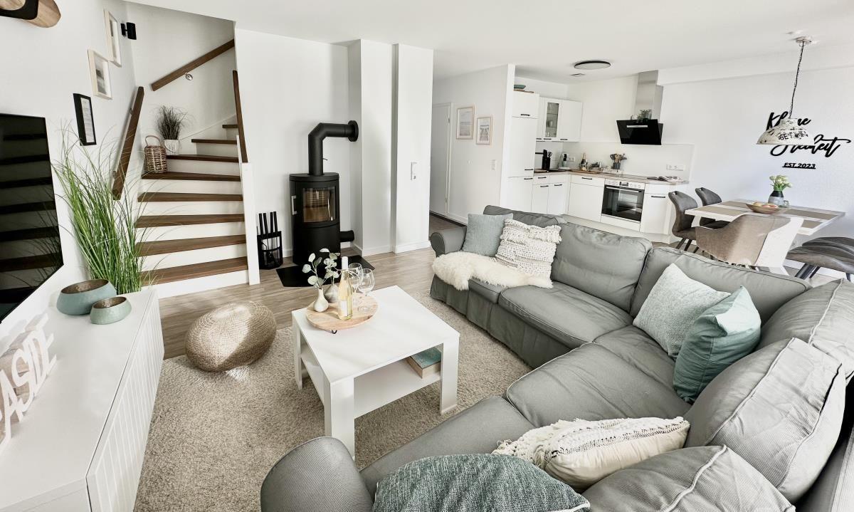 Über zwei Etagen bietet das Ferienhaus auf etwa 126 m² neben drei Schlafzimmern auch zwei Badezimmer, einen großen, lichtdurchfluteten Wohn- und Essbereich mit offener Küche, eine Terrasse und eine Loggia im Obergeschoss. Dank Schreibtisch und gut ausgebautem WLAN, ist auch Homeoffice in Büsum kein Problem.