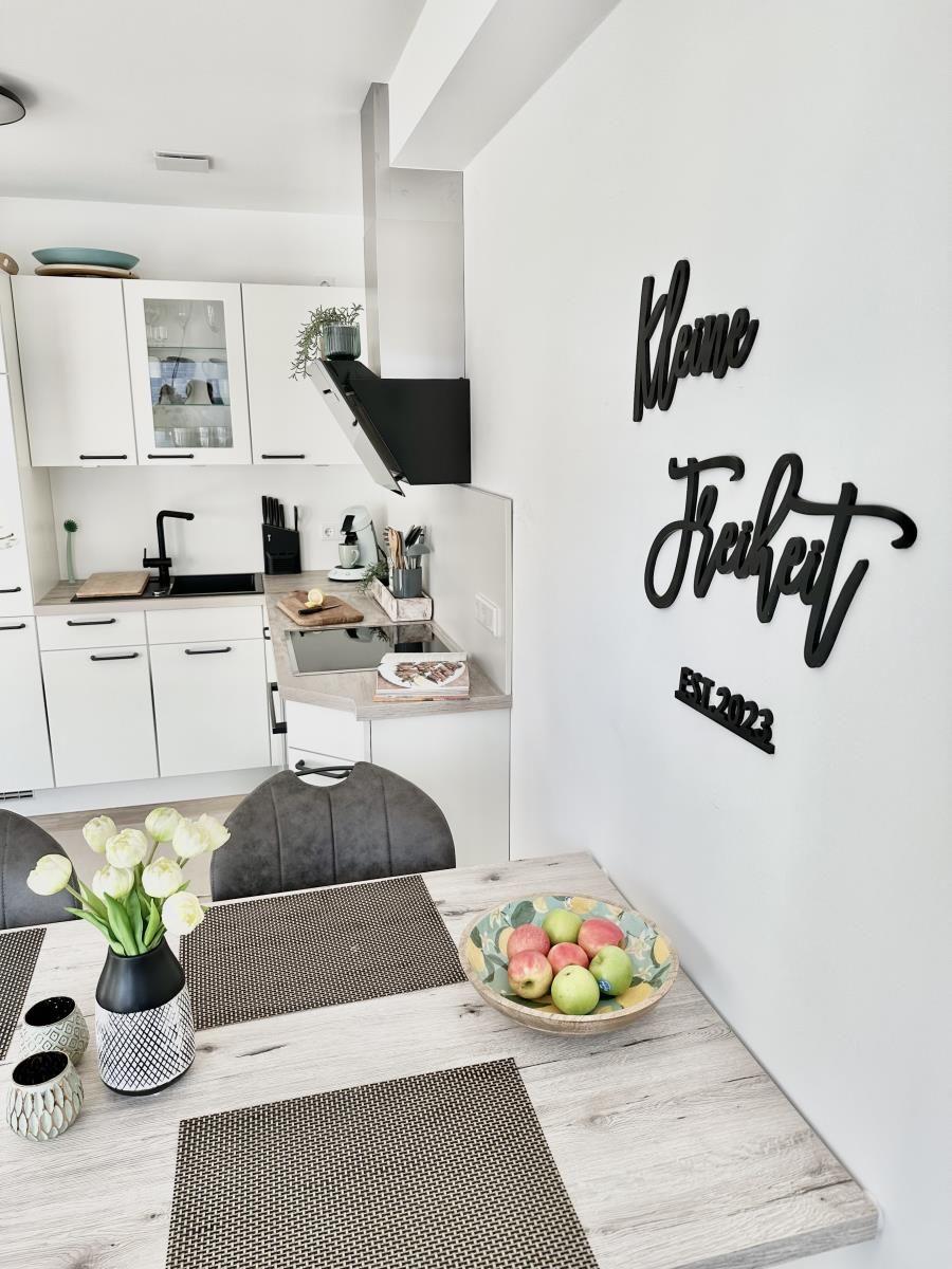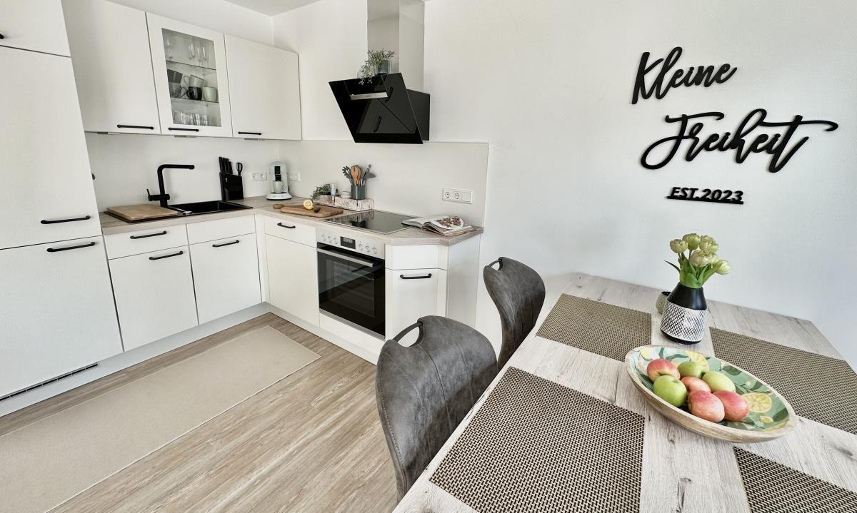In der vollausgestatteten Küche können Sie leckere Gerichte zaubern. Ebenfalls im Erdgeschoss befindet sich ein Gäste-WC mit Toilette und Waschbecken und ein Schlafzimmer mit einem Bett mit Ausziehmöglichkeit, das Schlafplätze für zwei Personen bietet.